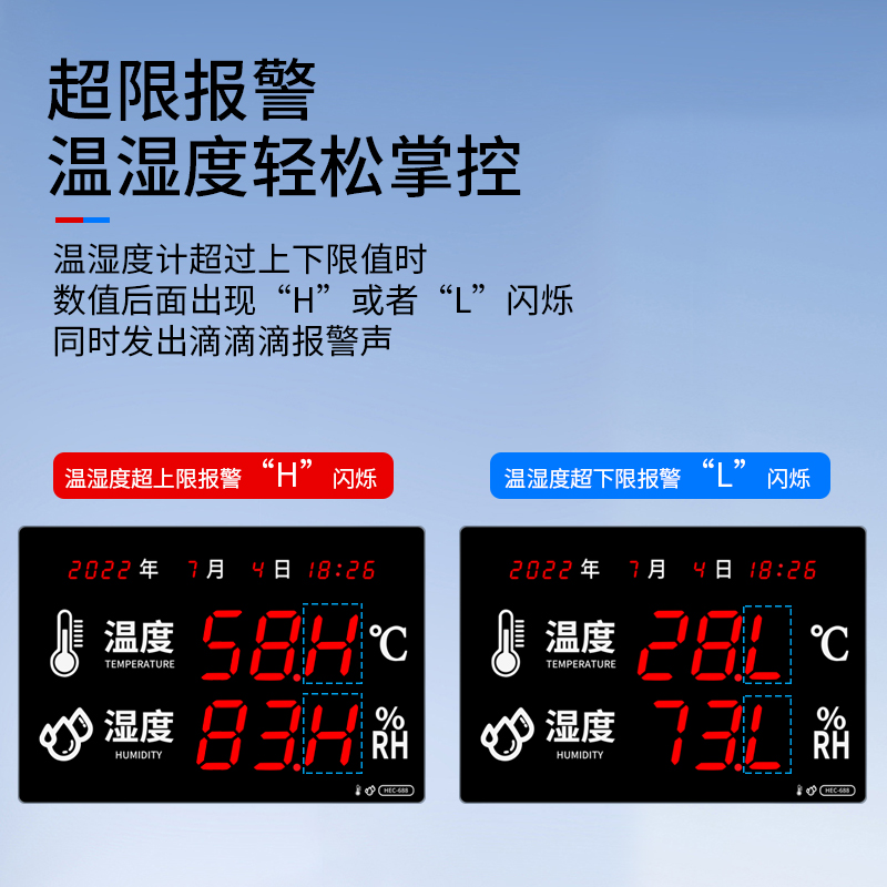 New product large screen LED industrial grade high precision temperature and humidity meter warehouse workshop with alarm display instrument clock-Taobao