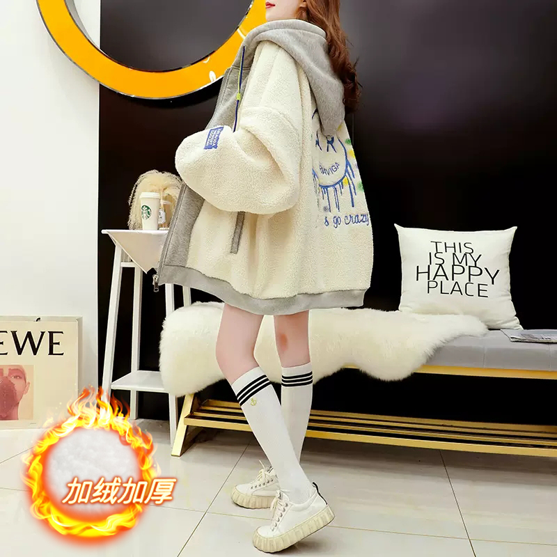 Pregnancy Woman Dress Autumn Winter Style Plus Suede Thickened Jacket Blouse Loose Big Code Sweatshirt Autumn Clothing Fashion style Cashmere Windsuit-Taobao