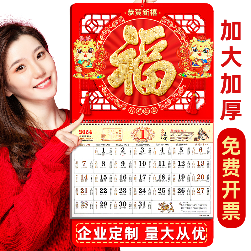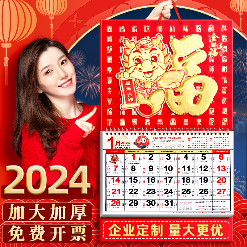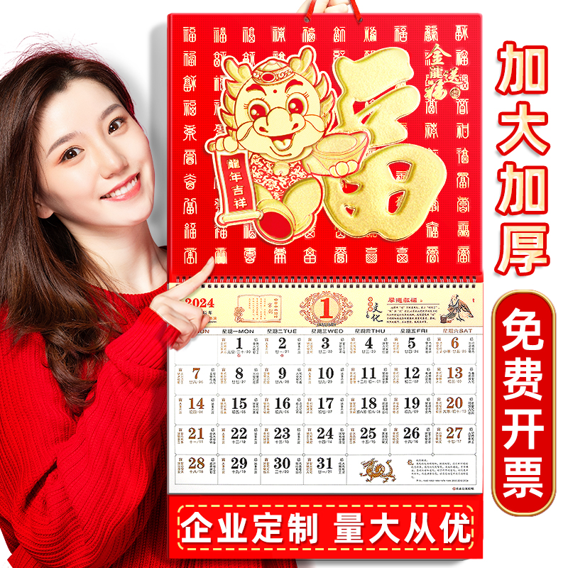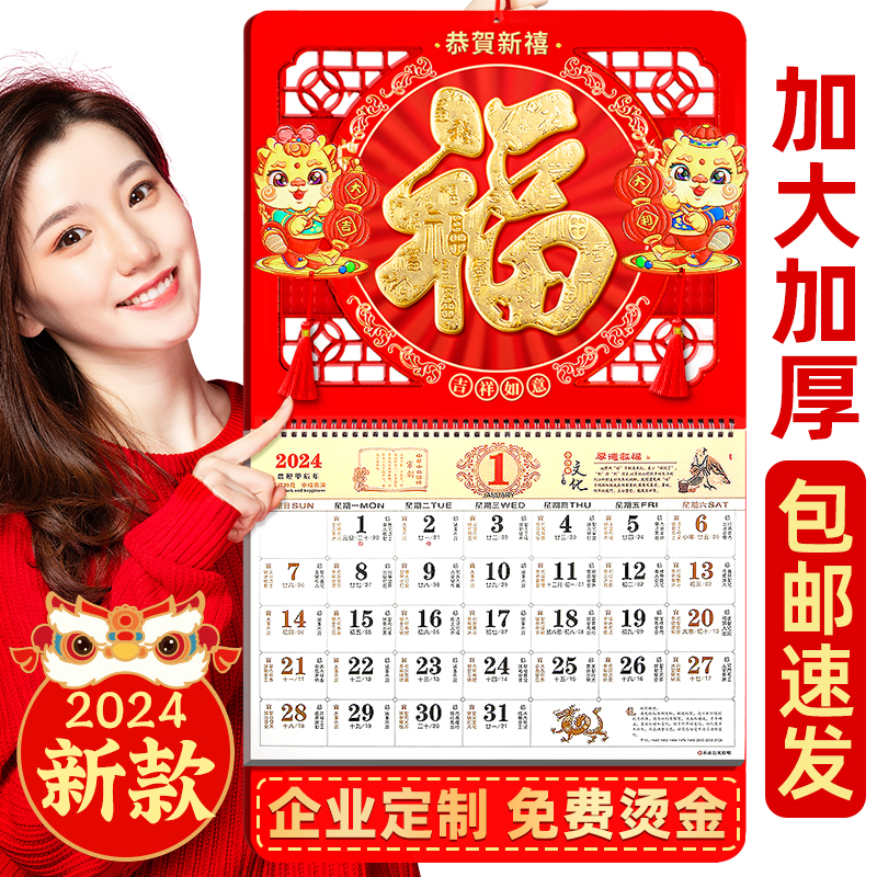 2024 Hang Calendar Dragon Year New Yellow Calendar Lunar Calendar Lunar Calendar Lunar Calendar Lunar Calendar Custom Booking Company Ad Hang Painting Big Upscale Home Fu Character Hand Ripping Perpetual Wall Old-style listing-Taobao