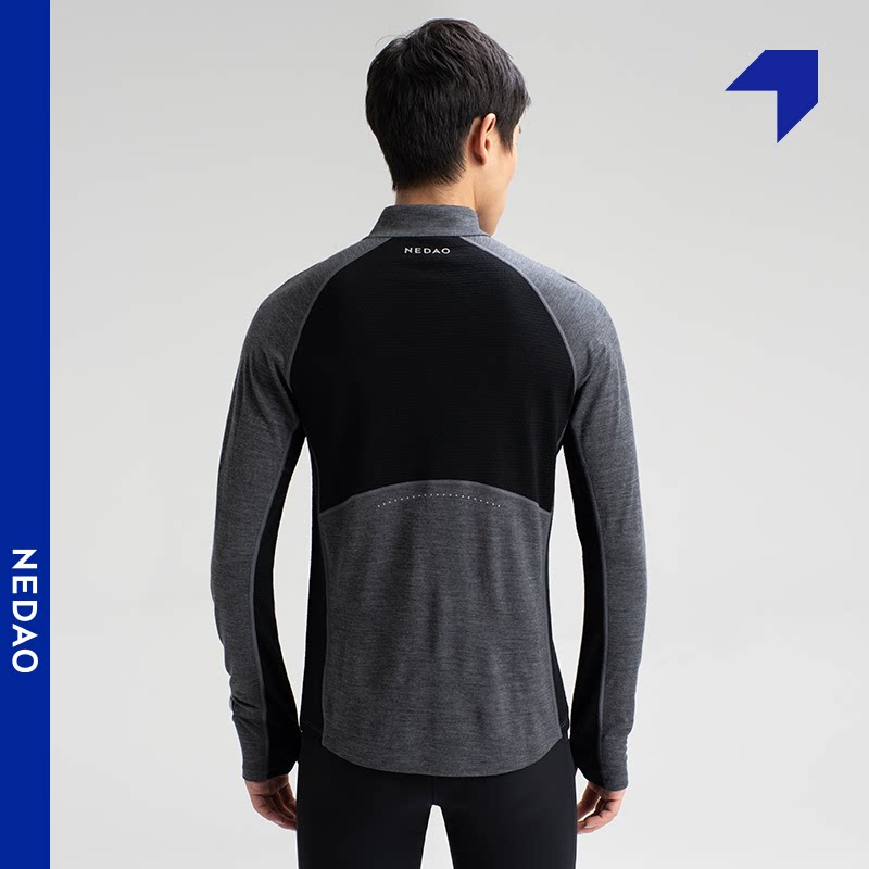 NEDAO Inner Trail (male and female) Beautiful slave wool machine wash warm speed dry half open collar cross-country running long sleeves-Taobao