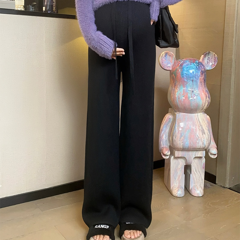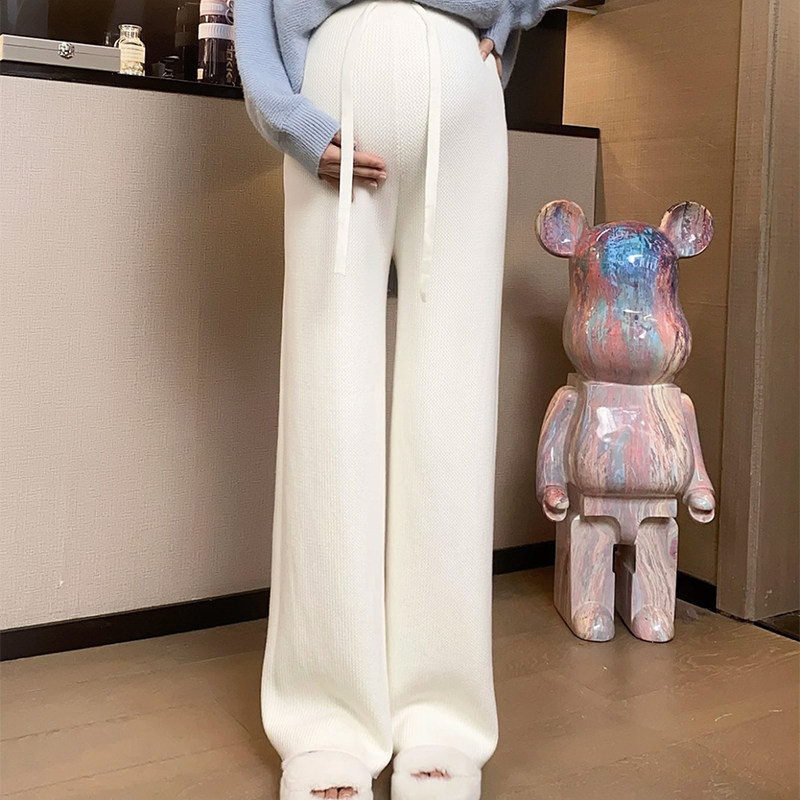 Pregnant Woman Casual Suit Autumn Winter New Ocean Gas 100 Hitch Knitted Blouse Casual Display Slim Plus Fleece Pants Two Sets-Taobao
