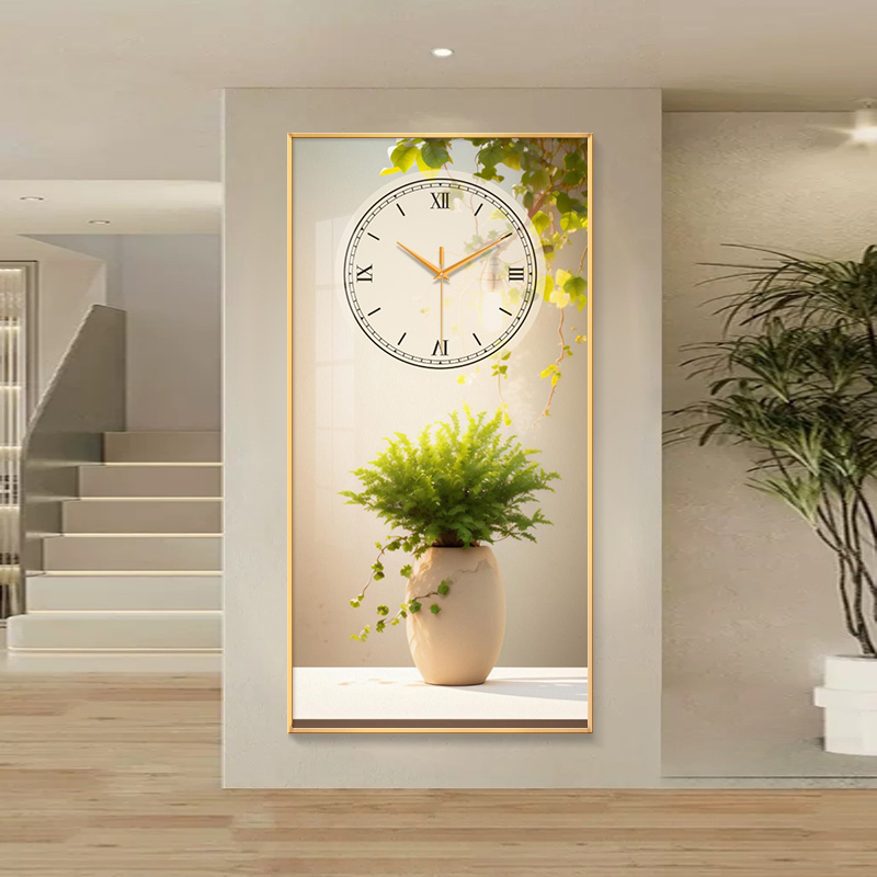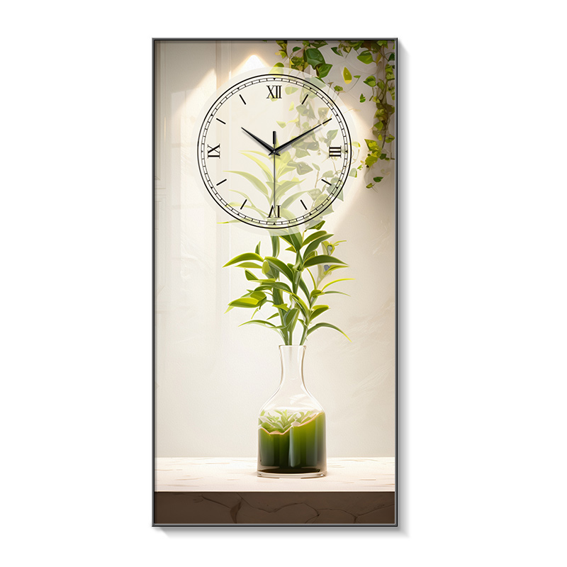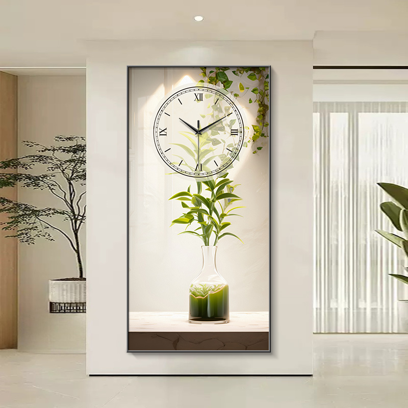 Fresh green plant Xuan guan decoration painting clock hanging bell living room 2023 new Nordic art clock hanging wall free of punch-Taobao