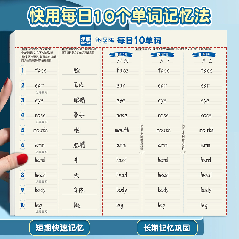 Primary School English Daily 10 Words Abinhos Memory Curve Merwriting Paper Elementary School Students Words Shorthand Ben Junior High School High School PEP Remember Words English Rote Learning back word record Ben-Taobao