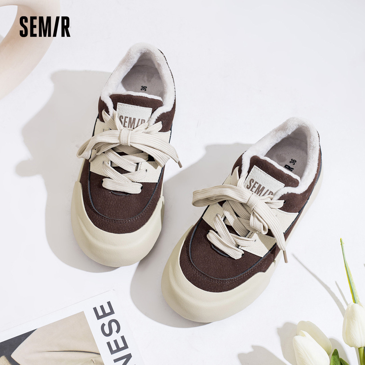 Semir sails shoes women's section 2023 autumn winter new shoes children 100 hitch bottom casual shoes plus suede panda shoes-Taobao