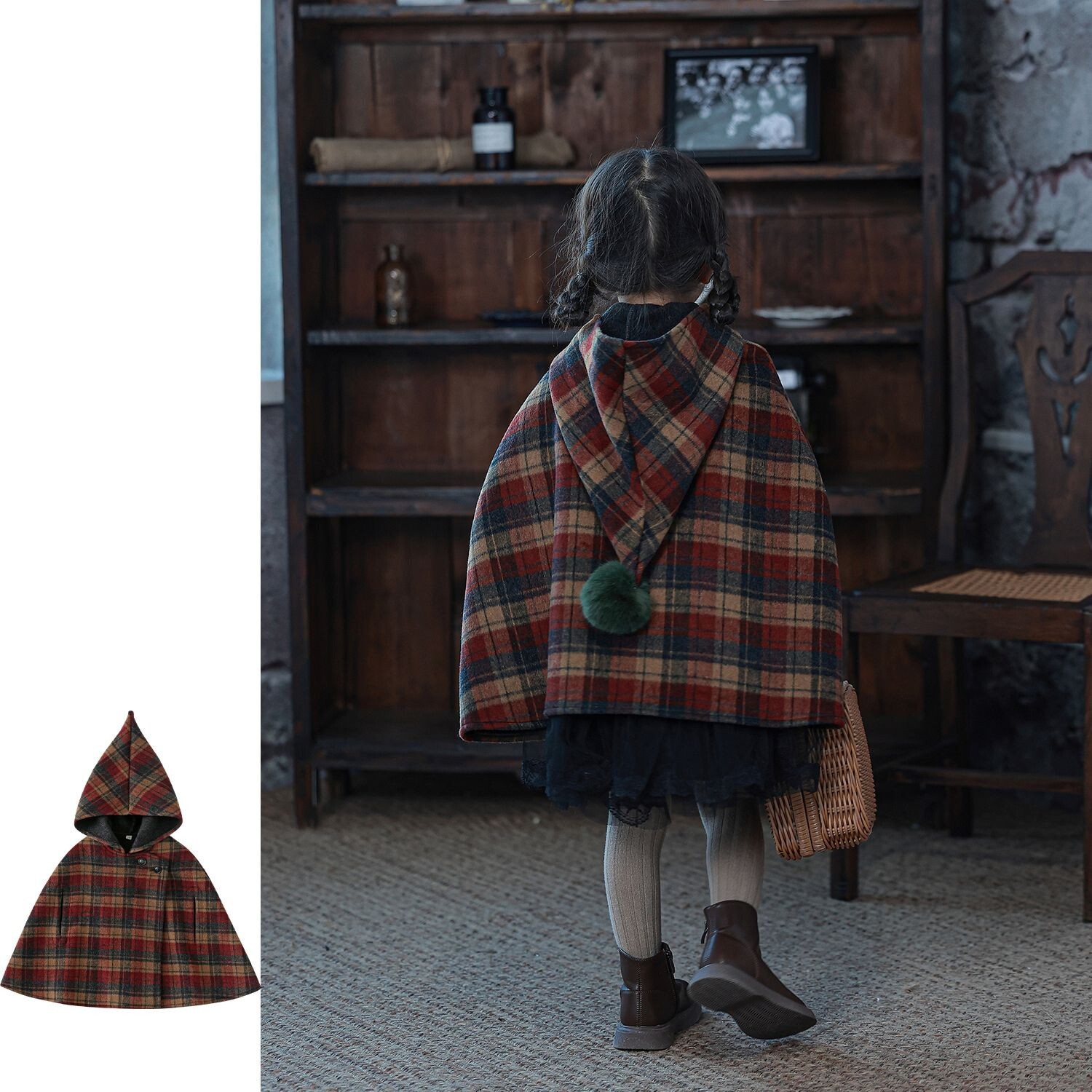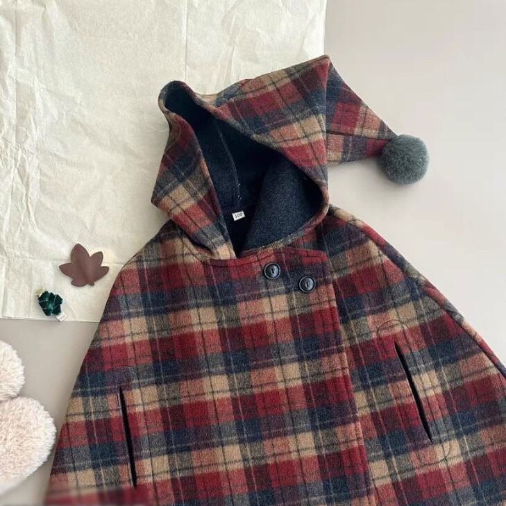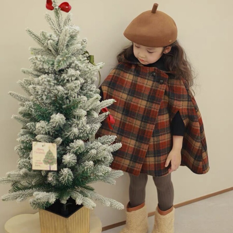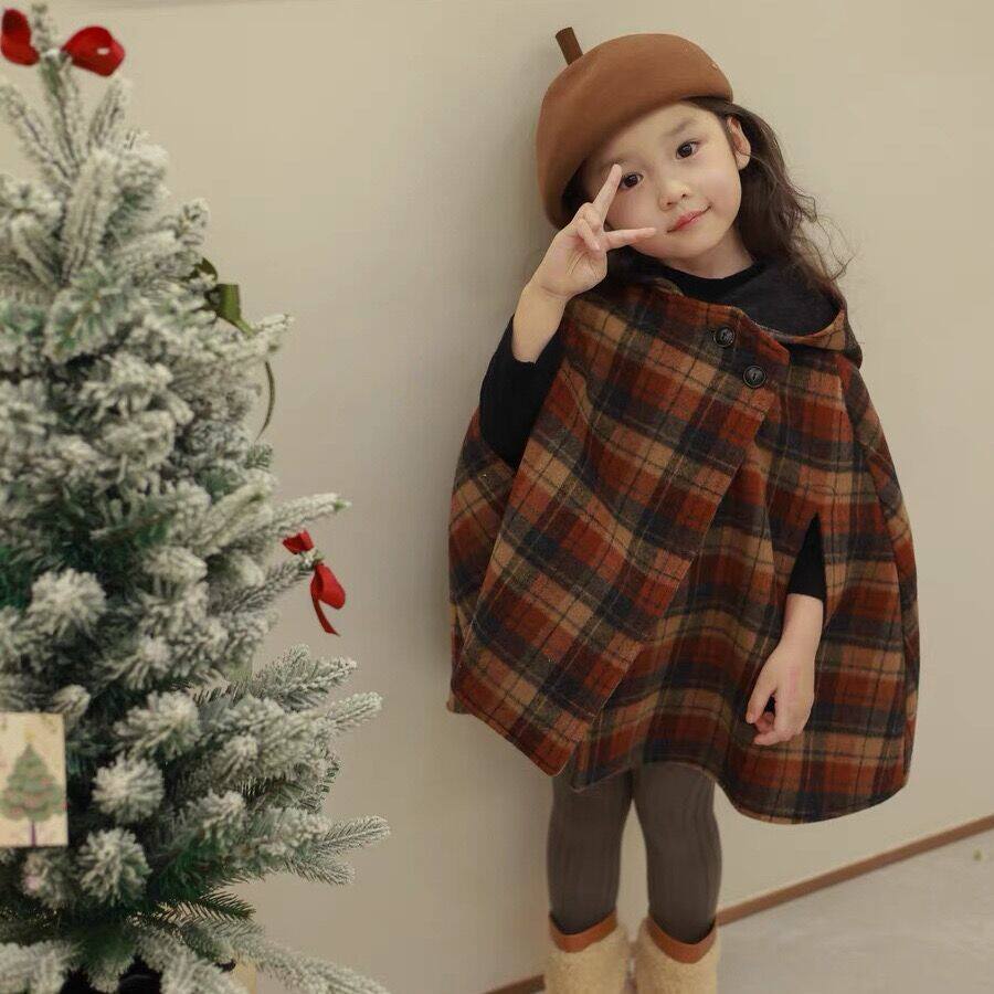 UK NEXT JIA Girl Plaid Cape Spring Autumn Little Girl Bifacial Wool Over Cape Child Warm Jacket-Taobao
