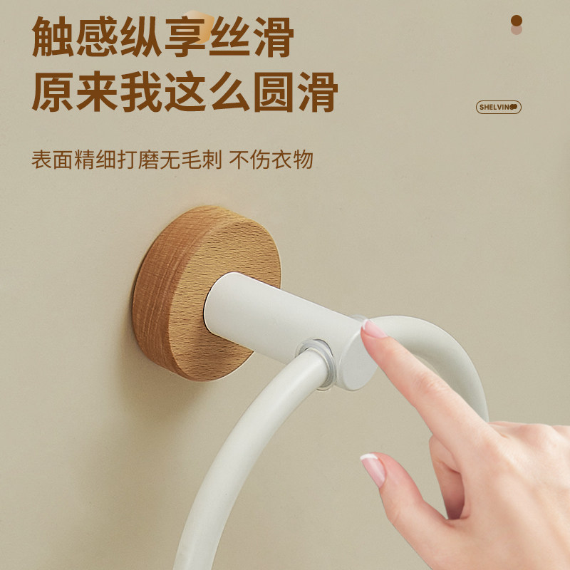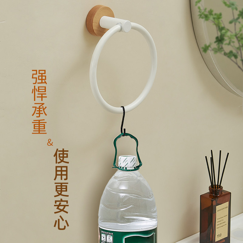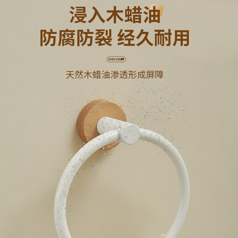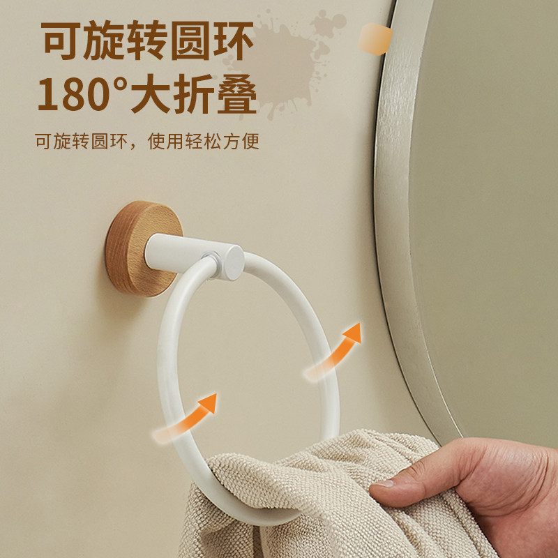 Free Punch Towel Ring Light Lavish Minimalist Log Cream Wind Toilet Bathroom Hung Towel Ring Solid Wood Towel Rod-Taobao