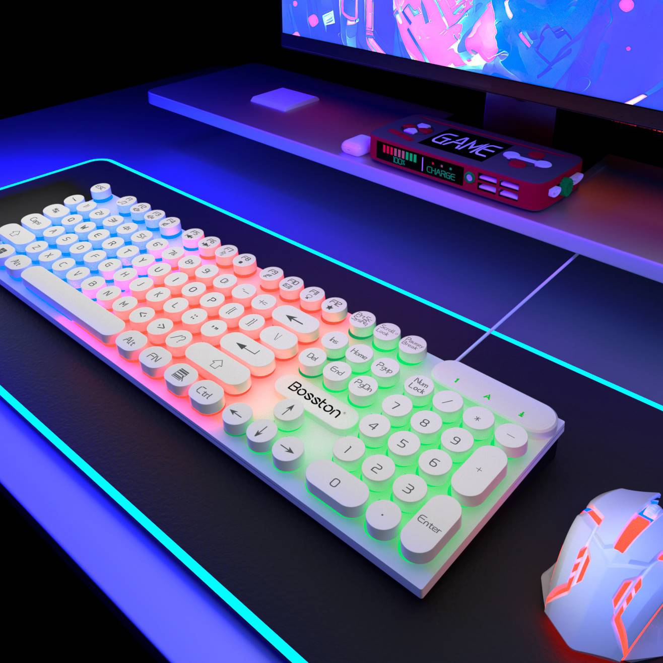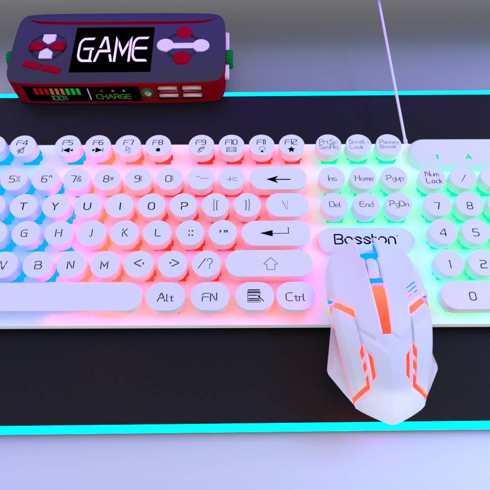 Kyauk White Punk Keyboard (Classic Home Office) Comfortable Hand Feel Kyauk White Punk Keyboard 4D Mouse Comfort feel elegant Black Character Ice Blu-ray (brisk electric race) Comfortable Feel Elegant Black Character Ice Blue