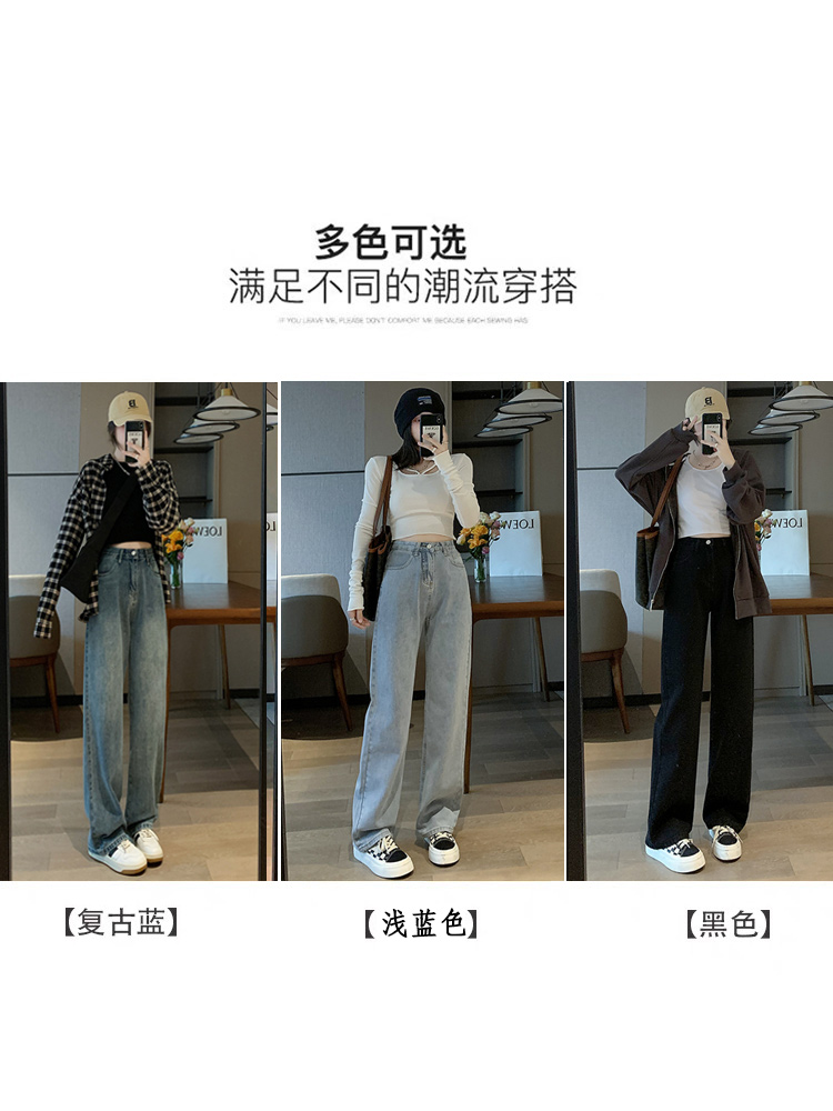 High waist wide leg jeans female summer 2023 new exploits slim 100 lap covety retro straight drum towering pants autumn-Taobao