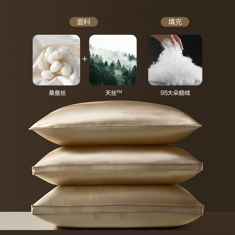 Rolaie Home Spinning Autumn Winter New Pint Pillow Core A Class Mulberry Silk 95 White Goose Down Pillow Student Dormitory Single Loading-Taobao
