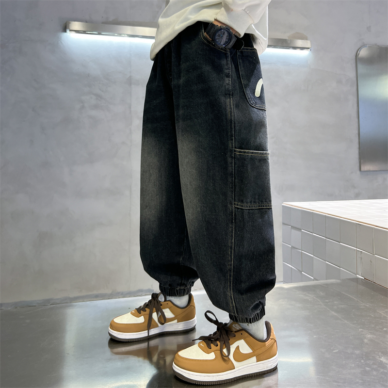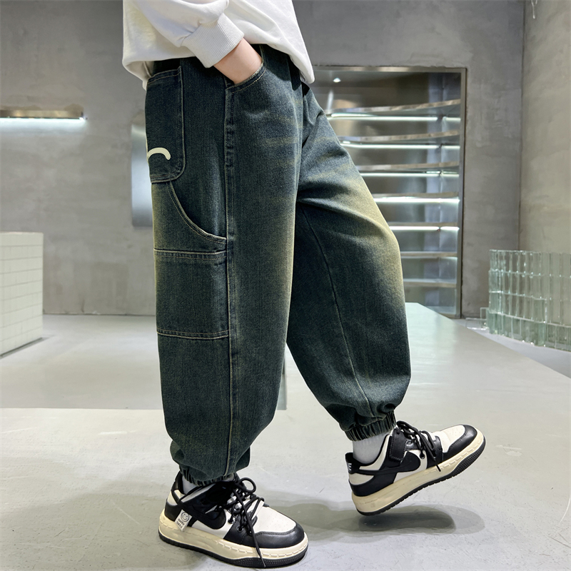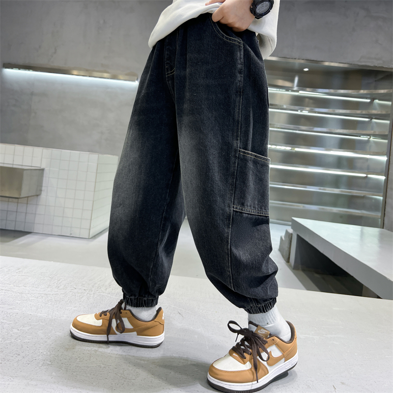 Boy gush thickened jeans autumn winter 2023 new children pants integrated suede overweight children winter long pants fried street-Taobao