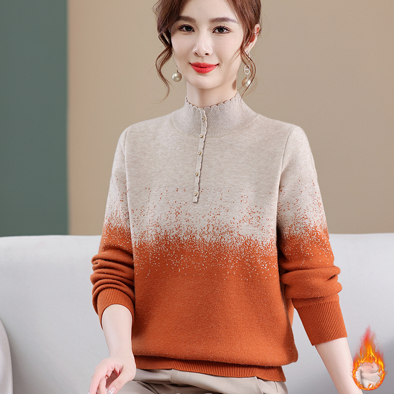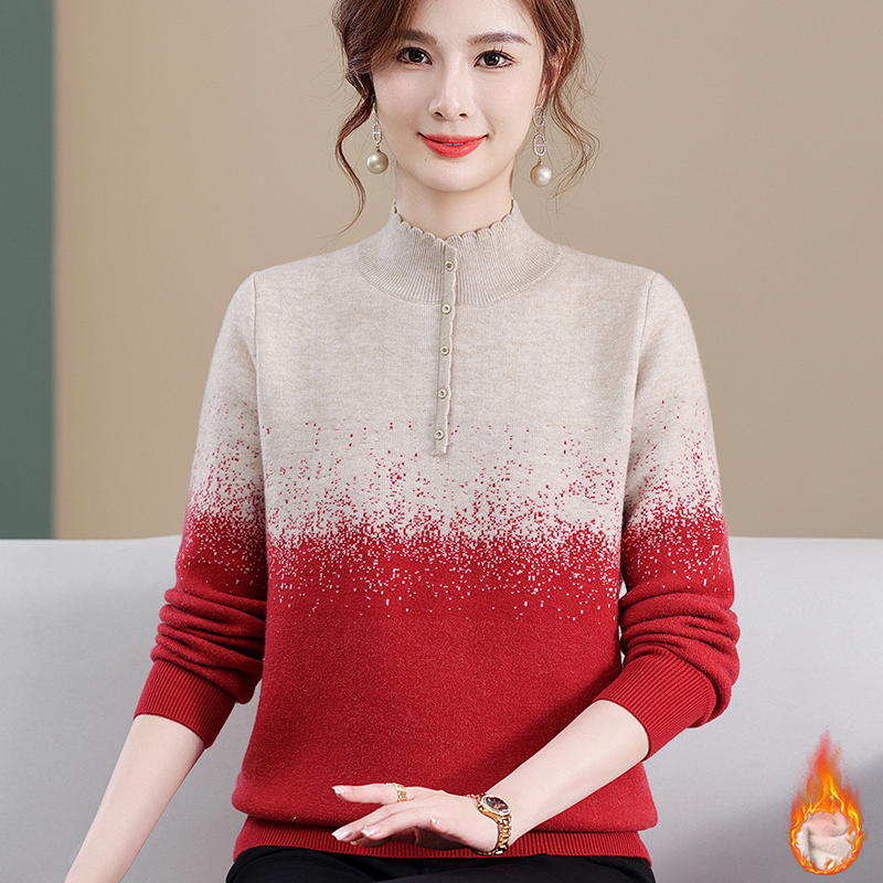 New mom clothes autumn winter new gush thickened sweater in older women's integrated suede undershirt with blouses-Taobao