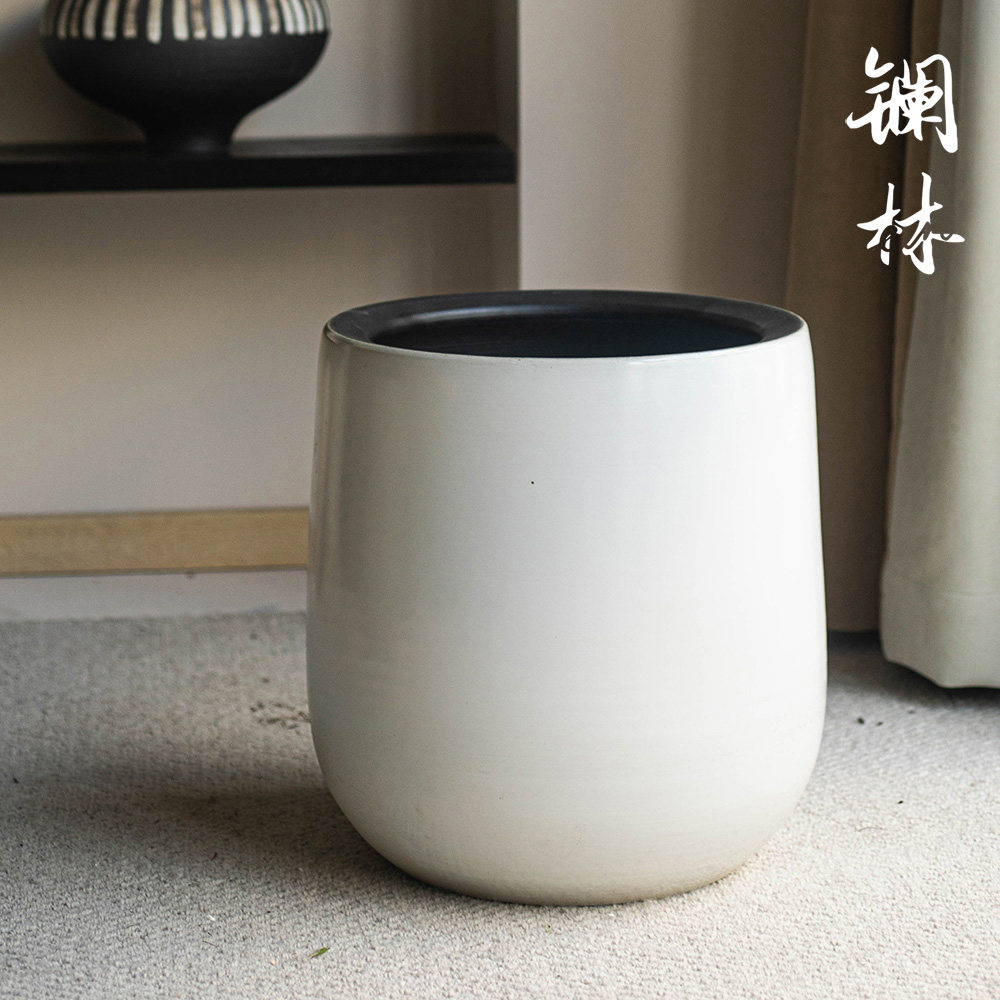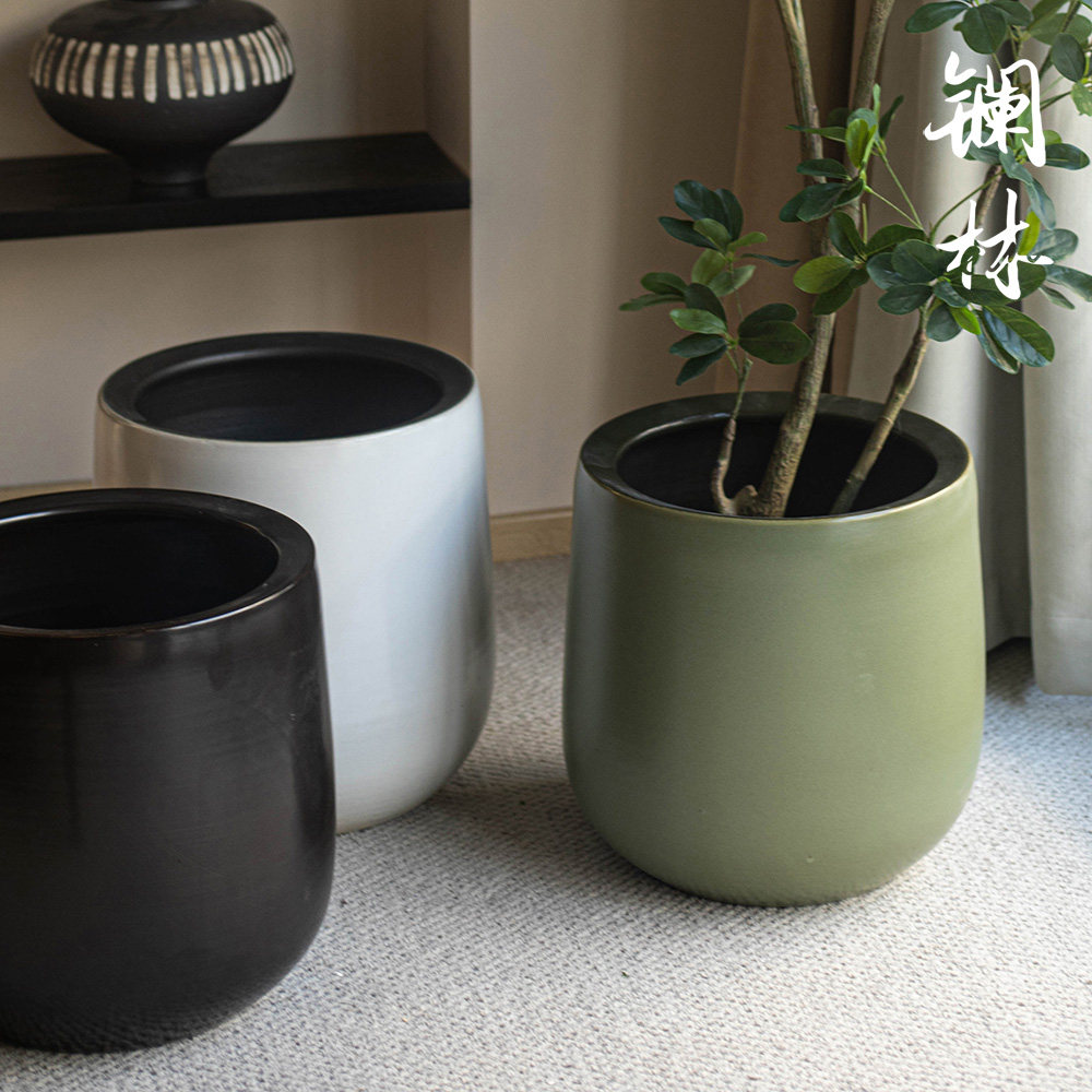 Modern minimalist floor large flower pot high-grade sense black ceramic basin indoor pendulum with balcony garden and other green planting scenery-Taobao