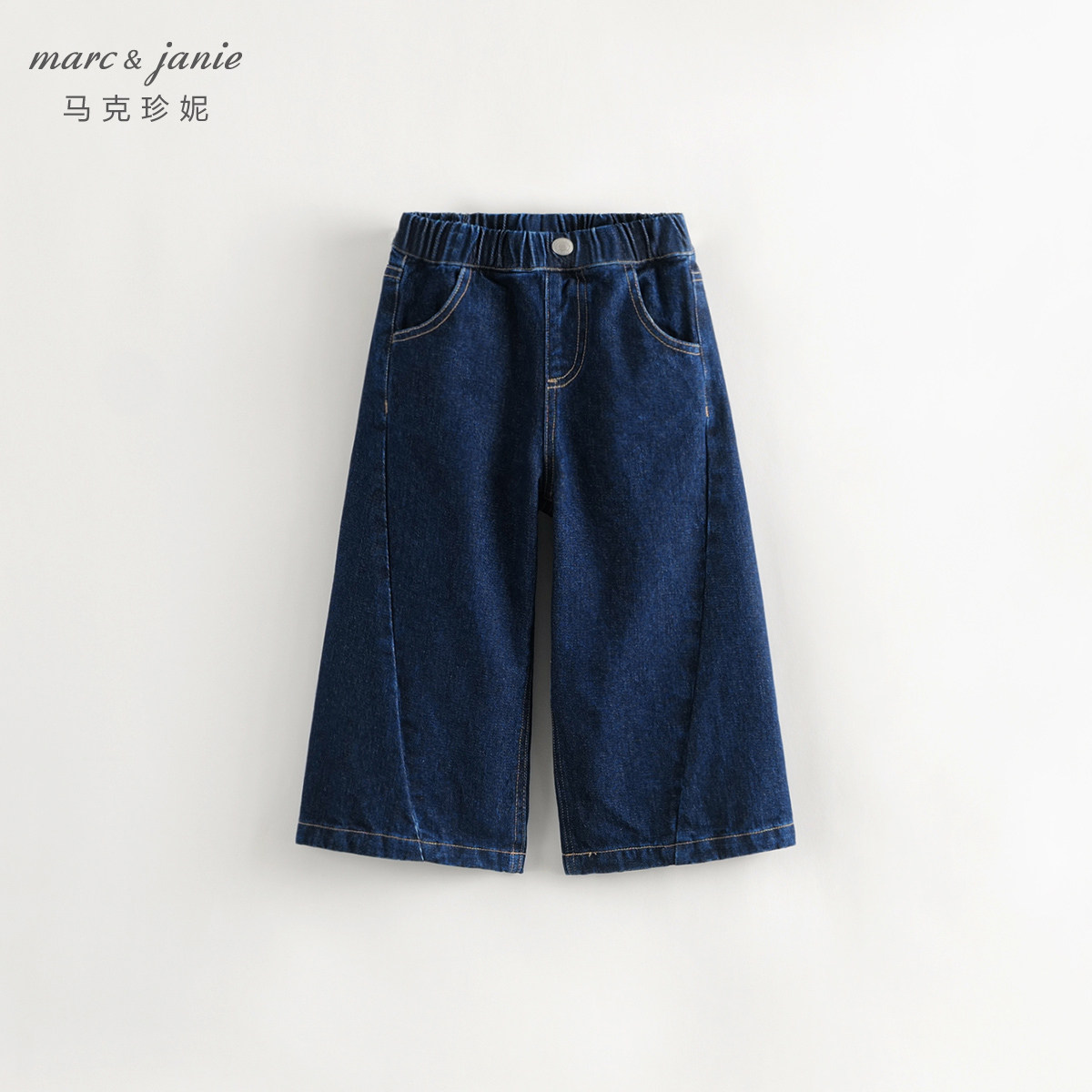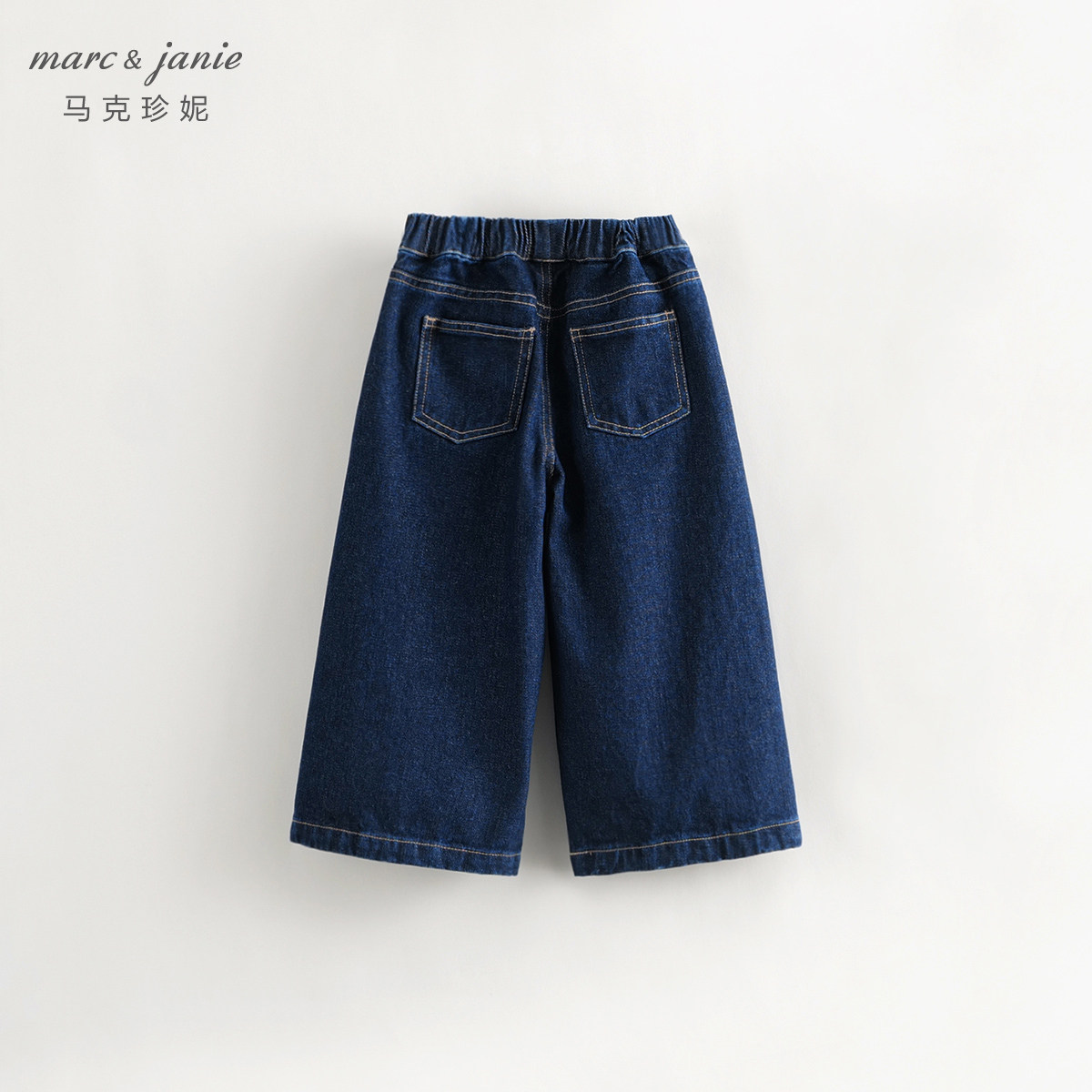 () Mark Jenny autumn clothes 2023 new girl splicing all cotton denim broadlegged pants children pants-Taobao