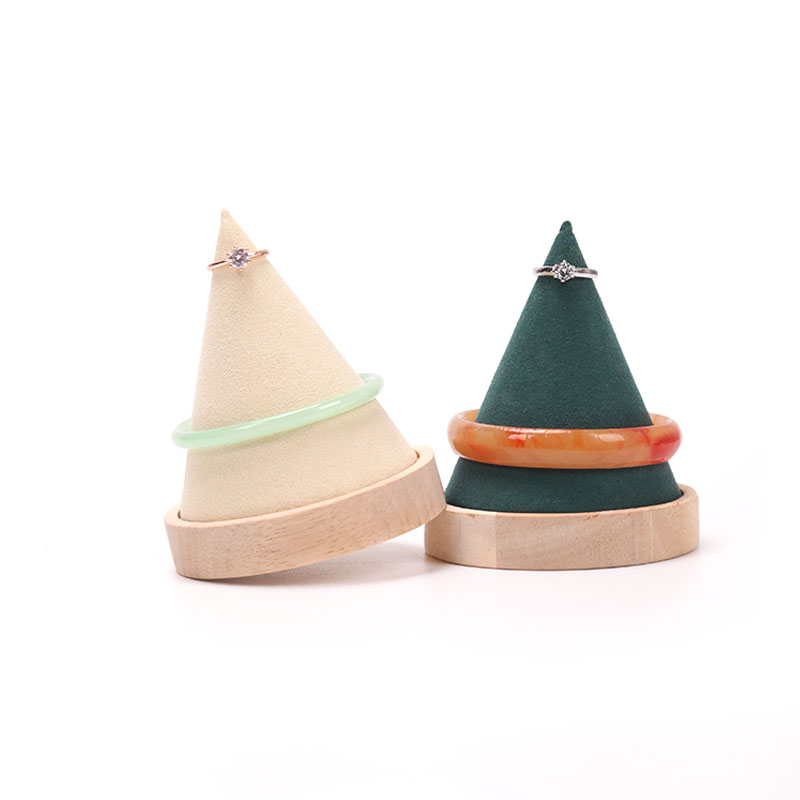 Solid Wood Cone Bracelet Frame Beige Solid Wood Cone Bracelet Holder Ink Green Solid Wood Cone Bracelet Frame Grey