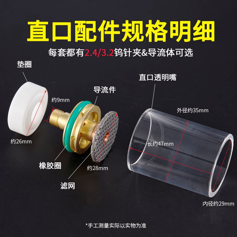 Argon Arc Welding Straight Mouth Transparent Porcelain Mouth Accessories Diversion body 2 4 3 2 connectome with strainer tungsten pin clip 2 0 gaskets-Taobao