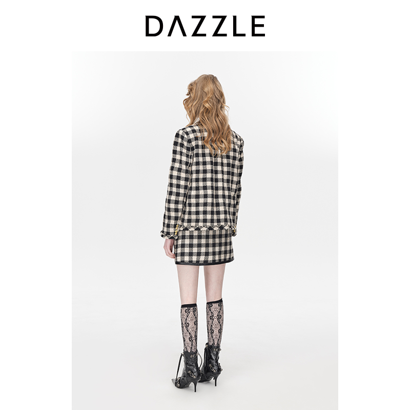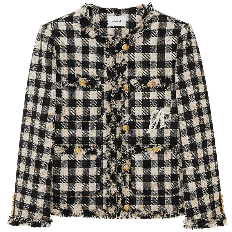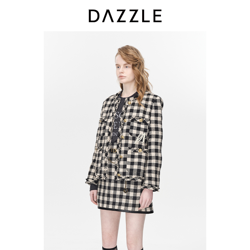 DAZZLE ground vegan plaid jacket 2023 winter new stylish gust small fragrant wind cotton suit jacket blouse girl-Taobao