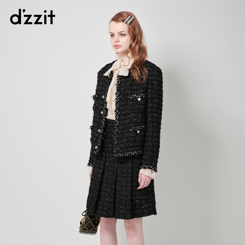 dzzit ground vegan black coarse flower in short cotton jacket 2023 winter special cabinet new small fragrance giggiann-Taobao