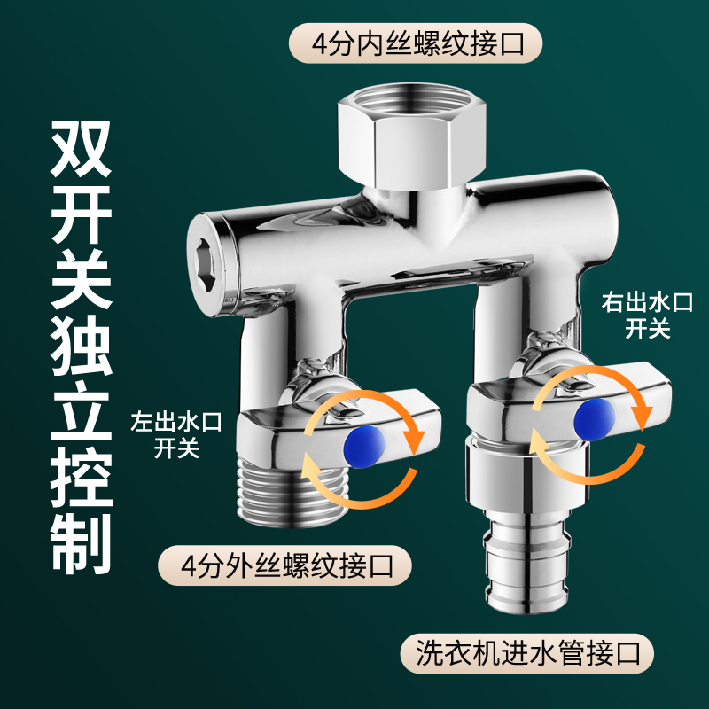 Three-way angle valve with one-in-two out full copper valve 10% two with double switch double water toilet water distributor 3143-Taobao