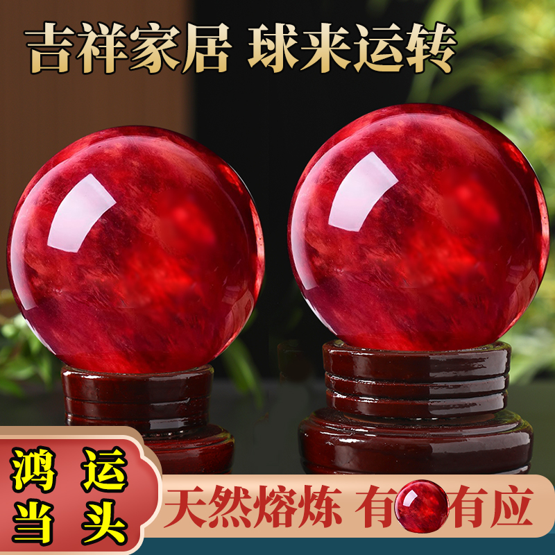 Natural smelting red water crystal ball swing piece Hongyun When head home living room Xuanguan office decoration opening gift-Taobao