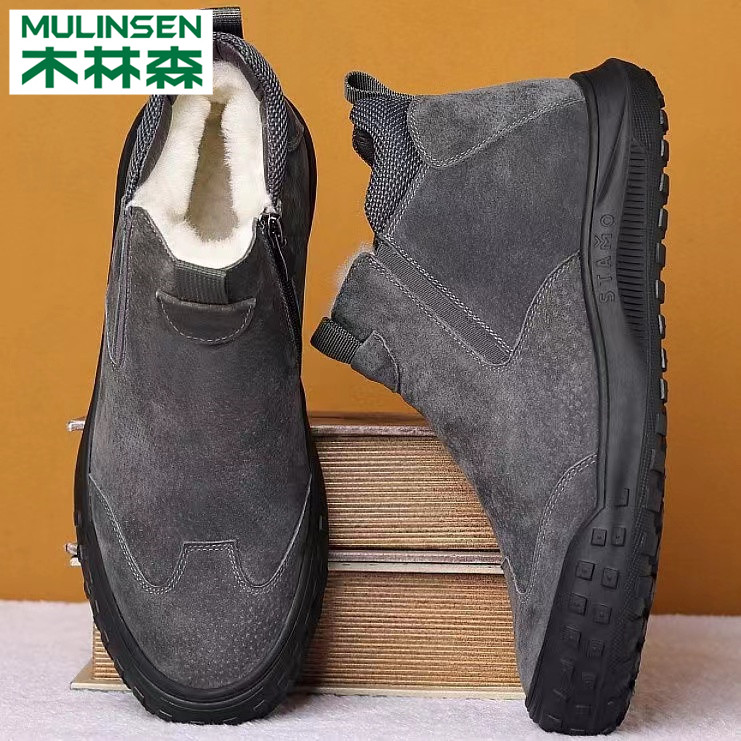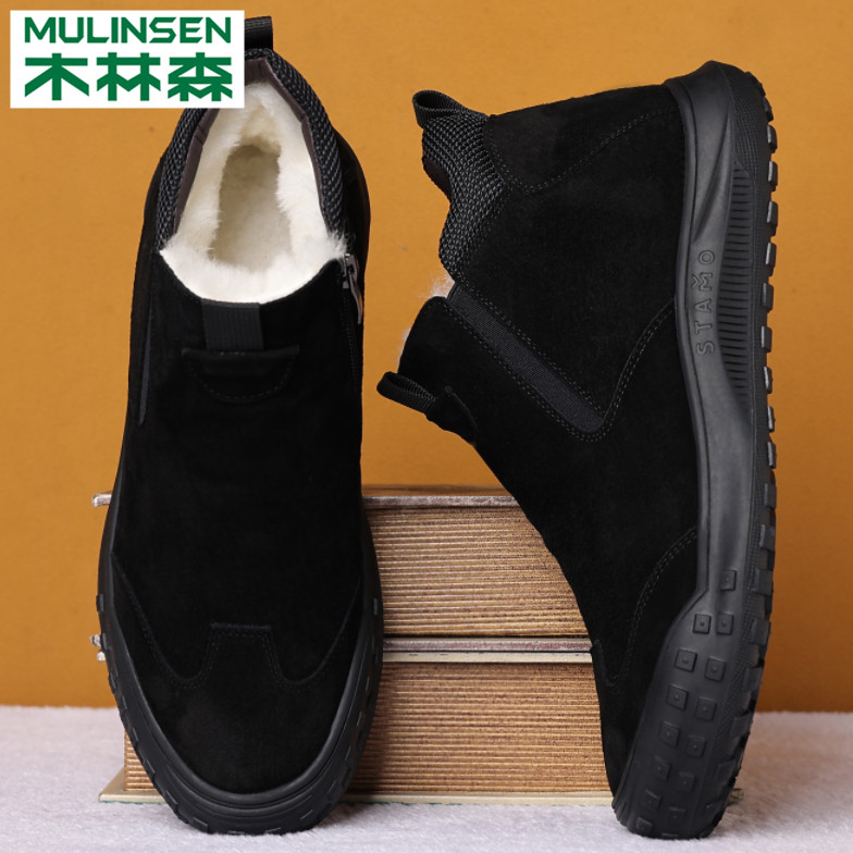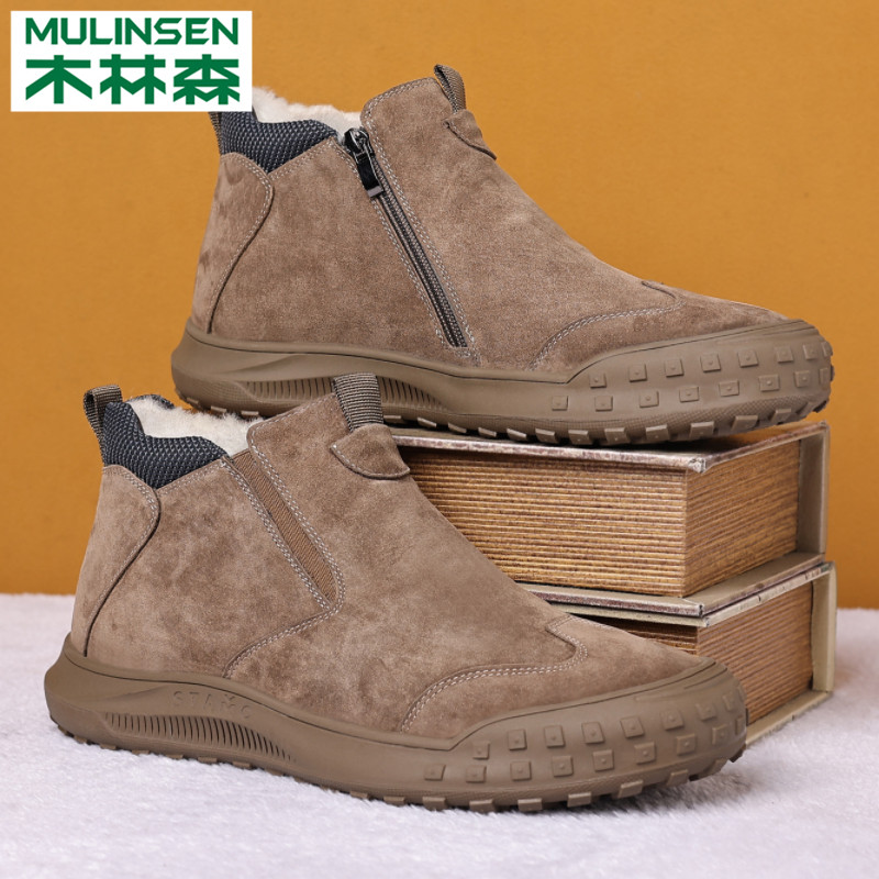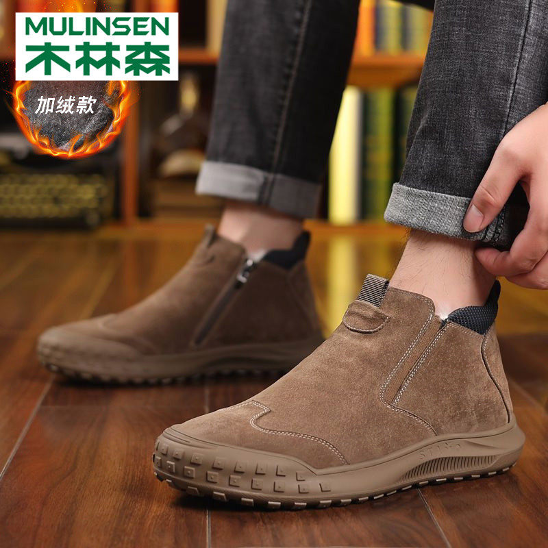 Wood Linen Men's Shoes Autumn Winter Plus Suede Thickened Warm Cotton Shoes One Foot Pedal Casual Bread Dad Martin Snowy Boots-Taobao