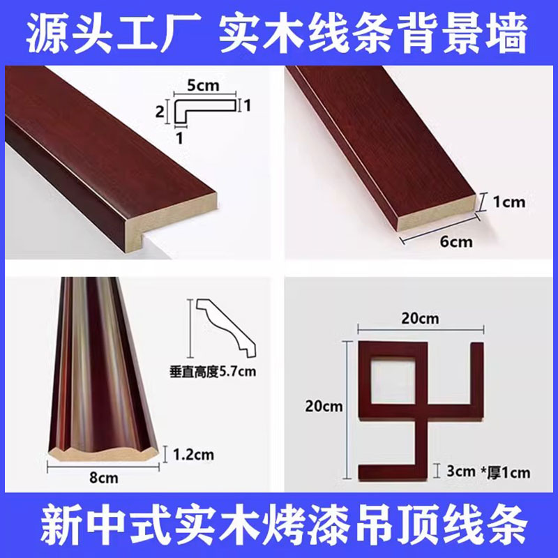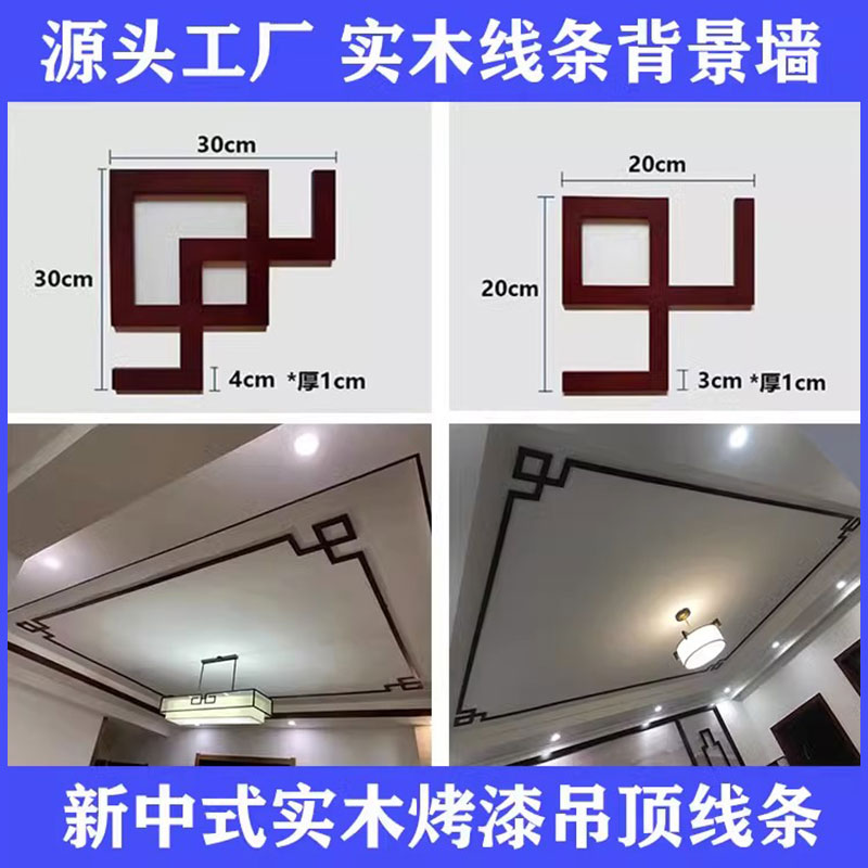 New Chinese solid wood baking finish line suspended L line 7 word line living room background wall flat frame top corner line trim-Taobao