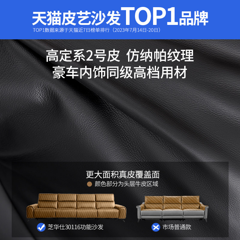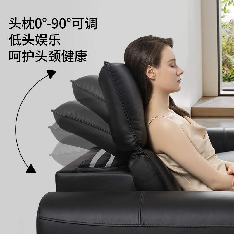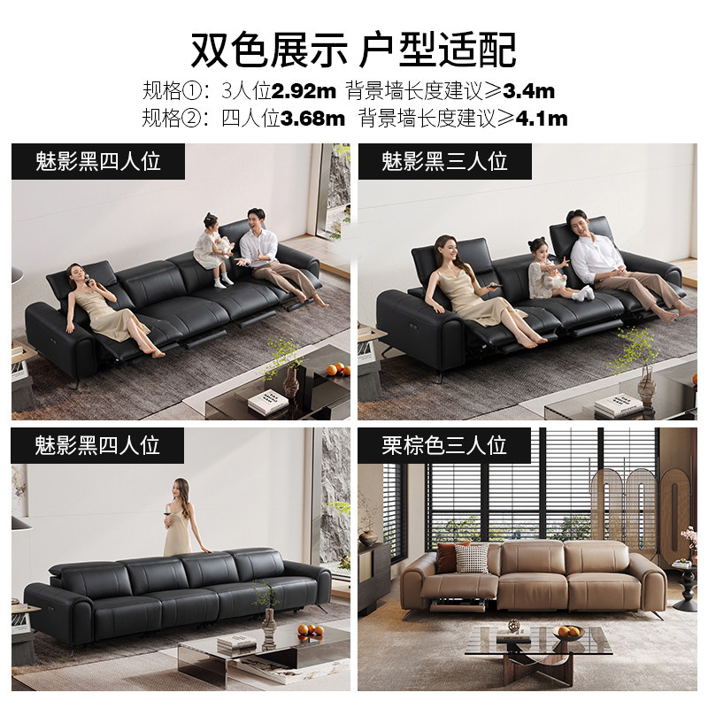 Chichuasee, etc. cabin modern light extravagant genuine leather electric function big black cow sofa head layer of cow leather straight up 30116-Taobao