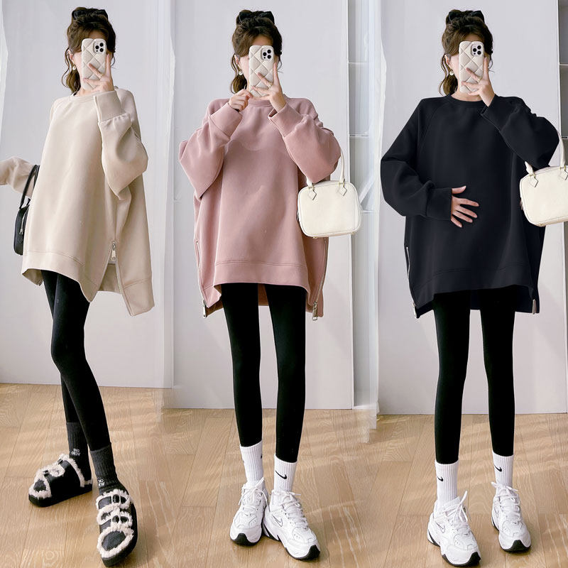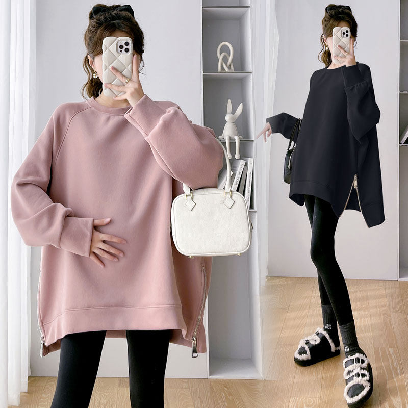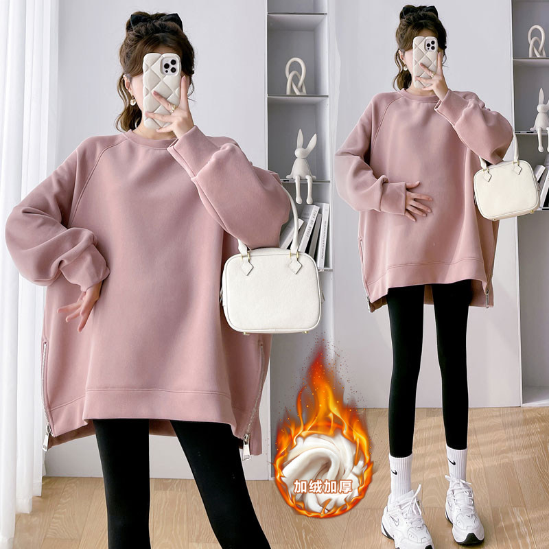 Pregnancy women's clothing autumn clothing 2023 plus suede thickened autumn winter new Korean version loose large code pregnant woman's clothing with long blouses-Taobao