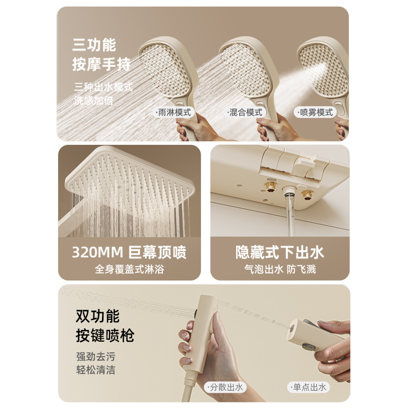 (number of expats) (milk white) (square tube) Four function Number of display shower shower SKQM088B-WH4-1 (thermostatic number of expats) (Milk White) (Square Tube) Four Functional Constant Temperature Number