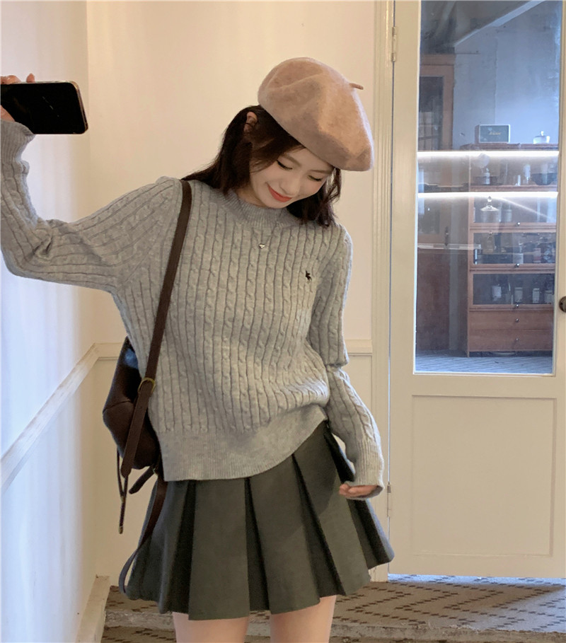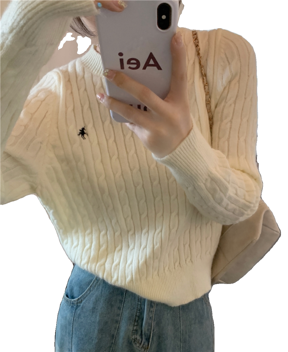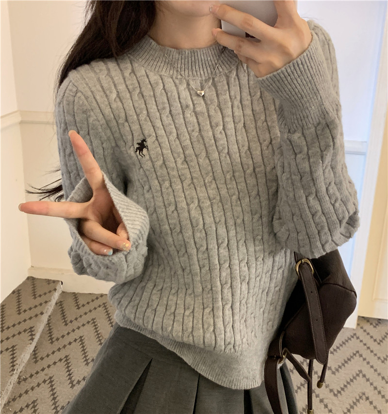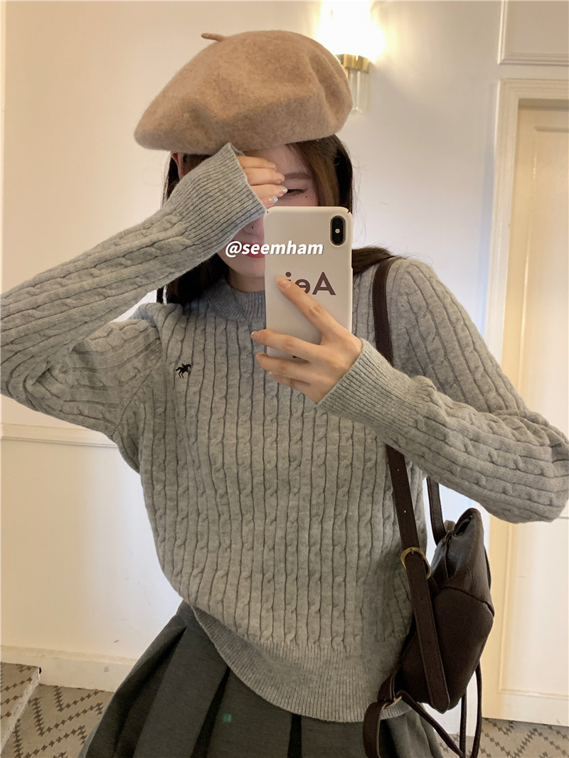 Autumn Winter 2023 New Korean Faculty Twist Round Collar LAZY SWEATER HIGH Embroidery Long sleeves Knitted Cardigan Blouse Blouse-Taobao