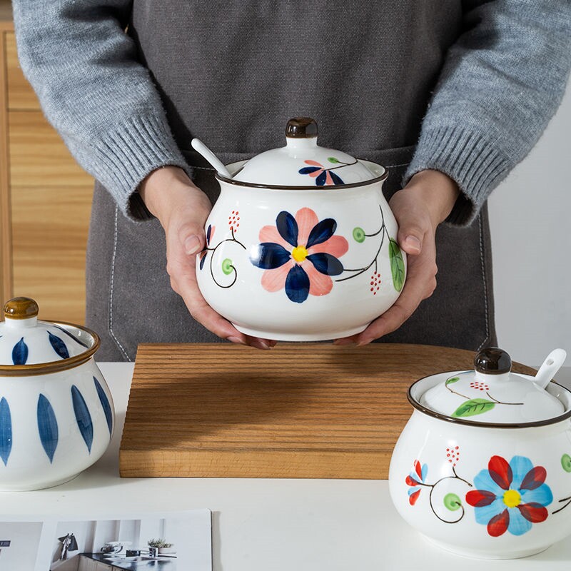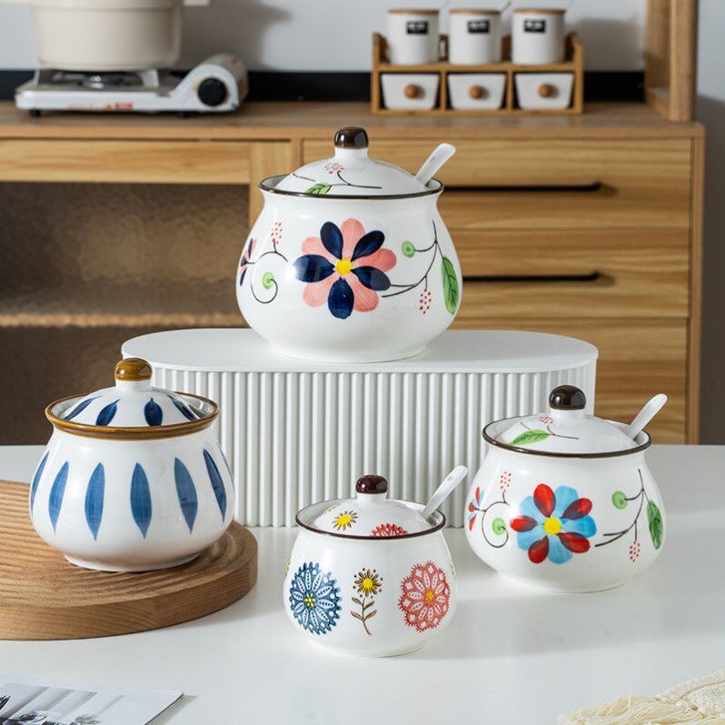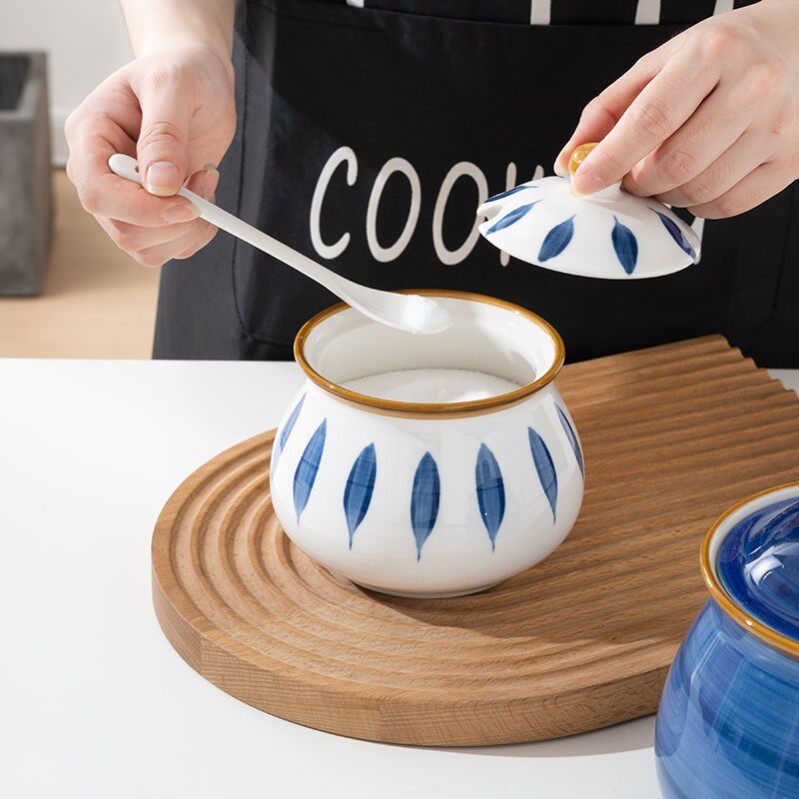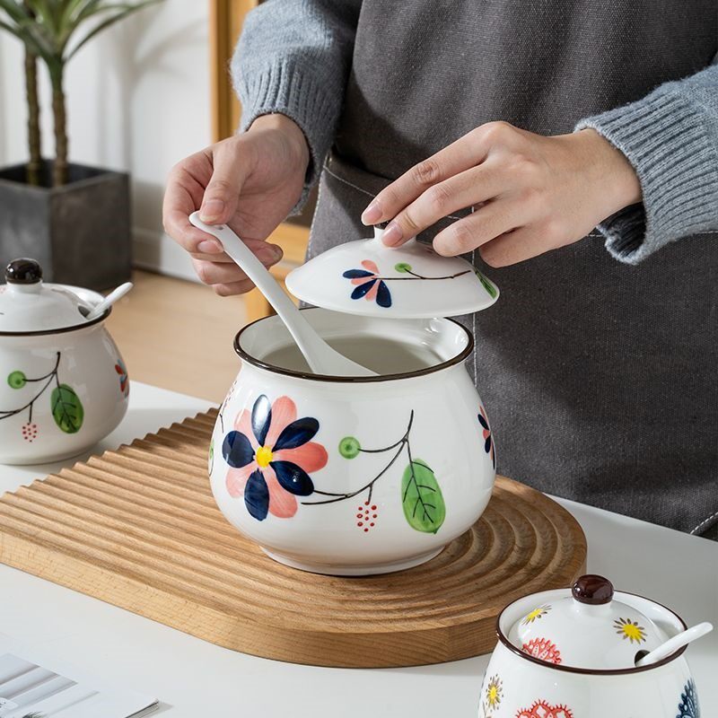Xinjiang Ceramics High Temperature Resistant Large Hog Oil Tank Oil Splash Hot Seed Sauce Bottle White Sugar Bottle With Lid Spoon Home-Taobao