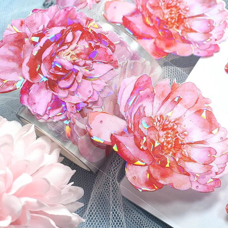 1Roll Flower Washi PET Tape Planner Laser Gold Foil DIY Card