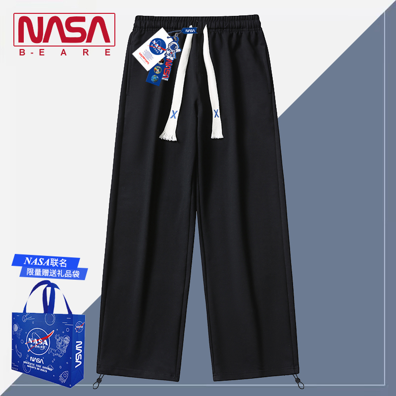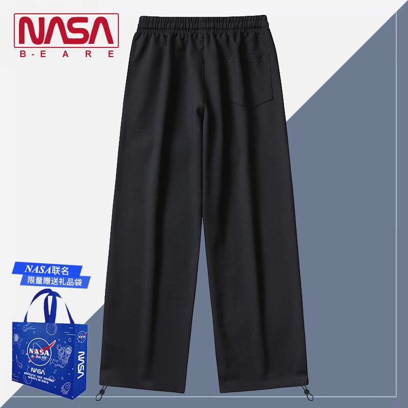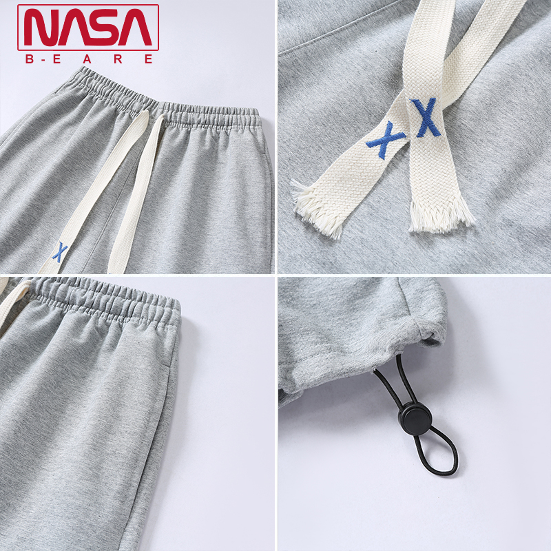 NASA Joint Grey Sports Men's Pure Color Winter Tide Cards Straight Barrel Casual Spring Autumn Season Easy Pumping Rope Plus Suede Pants-Taobao