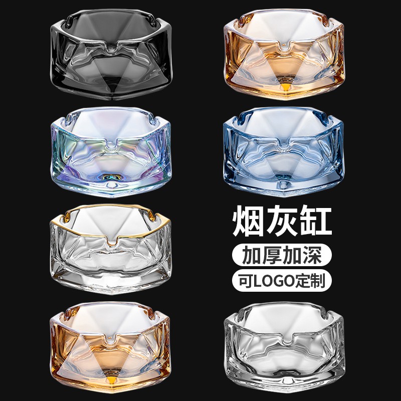 Transparent hexagonal diamond face ashtrays (thickened deepened) small amber hexagonal diamond surface ashtrays (thickened deepened) small number of ash six-prismatic diamond surface ashtrays (thickened deepened) small number of light blue six-edged diamond surface smoke