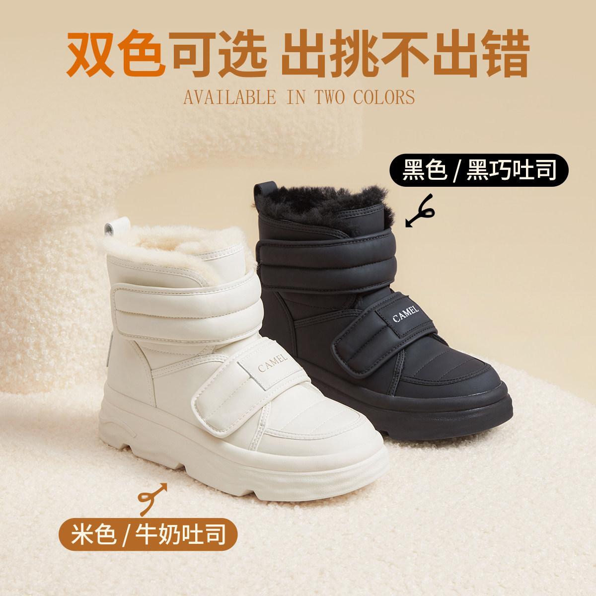 Camel Outdoor Women Shoes 2023 Winter New Plus Suede Warm Snowy Boots Round Head Short Boots Fashion 100 Hitch Cotton Shoes Woman-Taobao