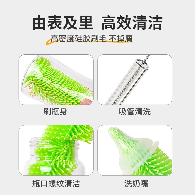 Portable bottle brushed suit-apple green portable milk bottle brushed suit-fog blue portable bottle brushed suit-Velpowder bottle brushed suit apple green 300ML bottle of bottle cleaning with bottle brush
