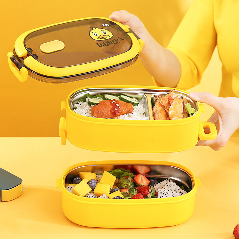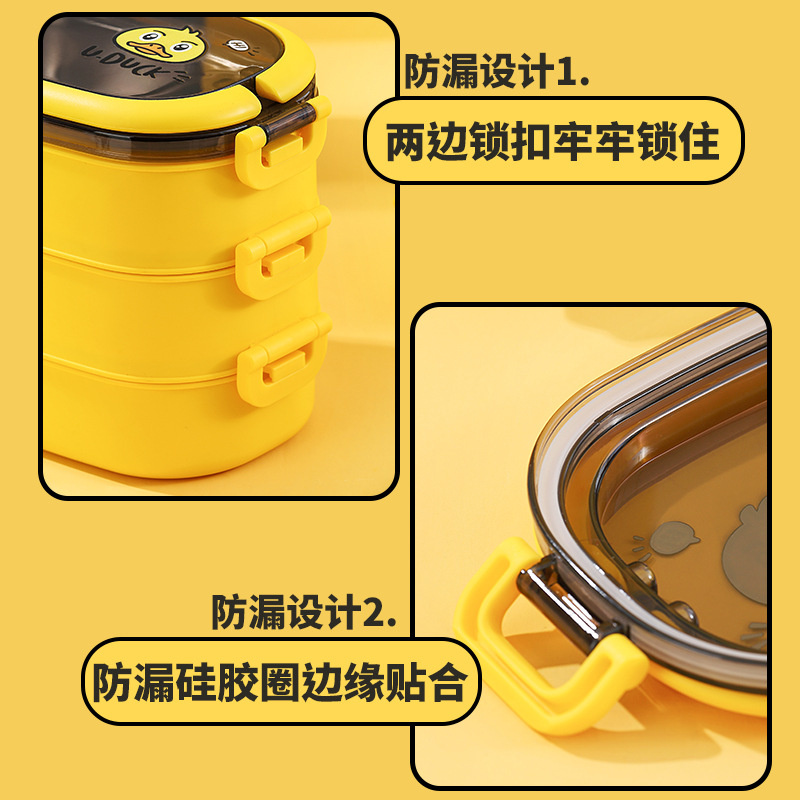 Small yellow duck 316 double-layered lunch box small yellow duck 316 three-layer lunch box draw cutlery Two sets Handle Breakfast Cup Plus High Insulation Bag