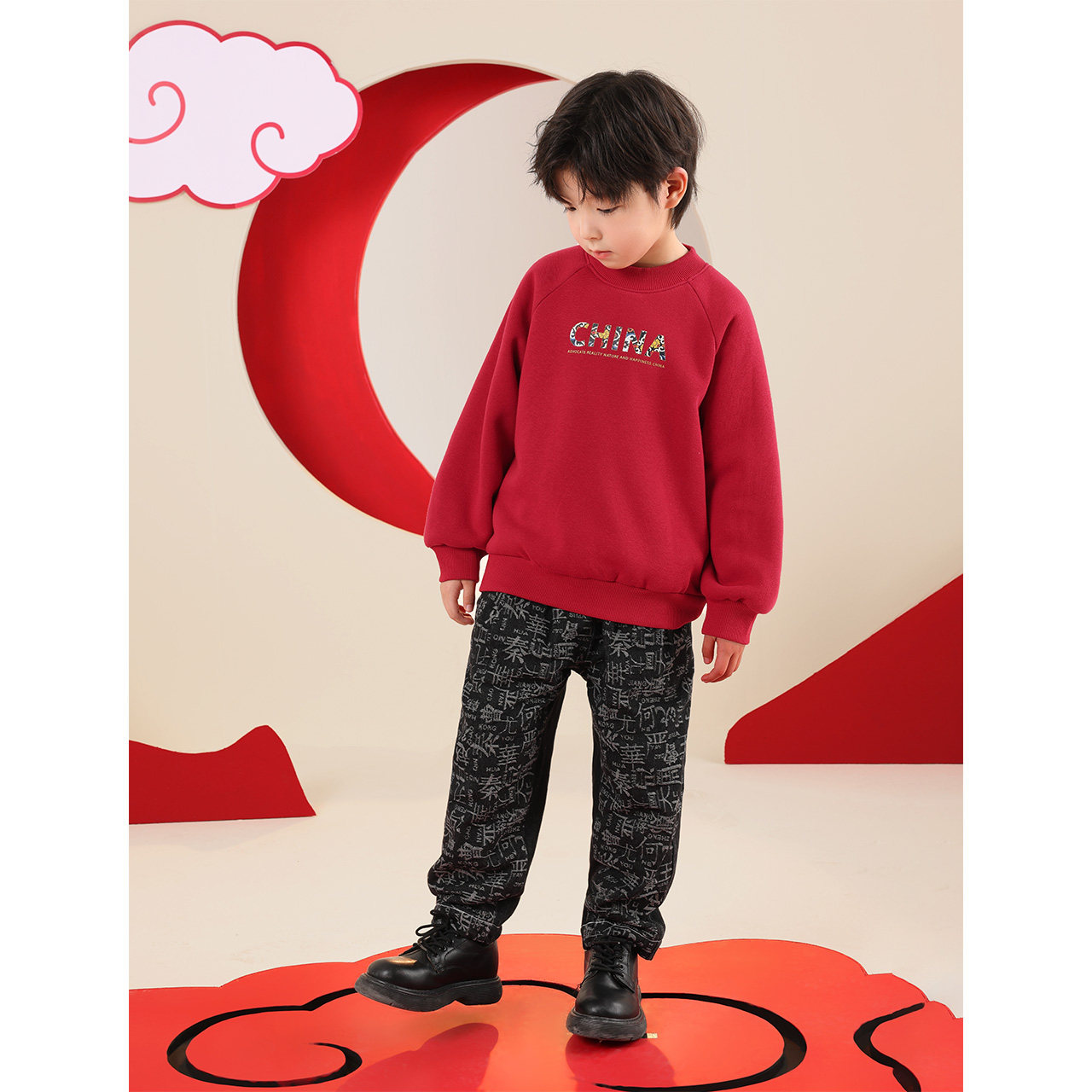 Left West Boy Clothing Boy Pants Plus Suede Jeans Thicken 2023 Autumn Winter New Children's National Wind Bayern Year Wear Pants-Taobao