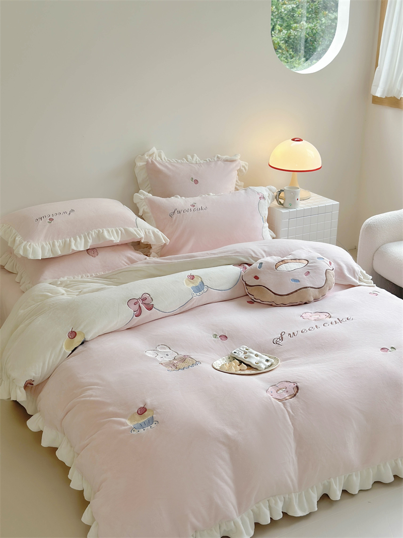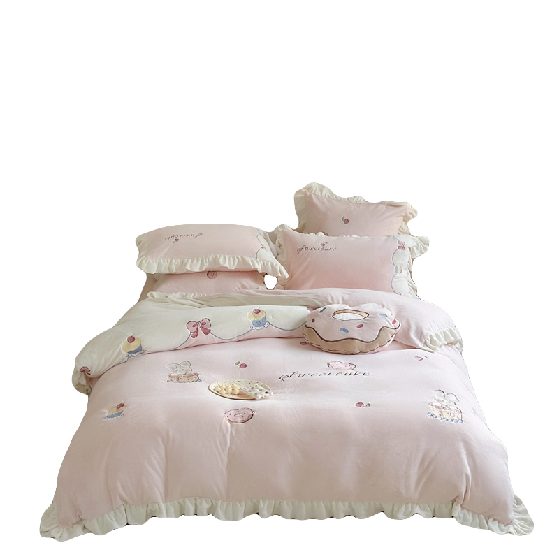 Winter small fresh thickened warm milk suede Four pieces Cartoon Rabbit Embroidered Quilt Cover Antistatic Bed supplies-Taobao
