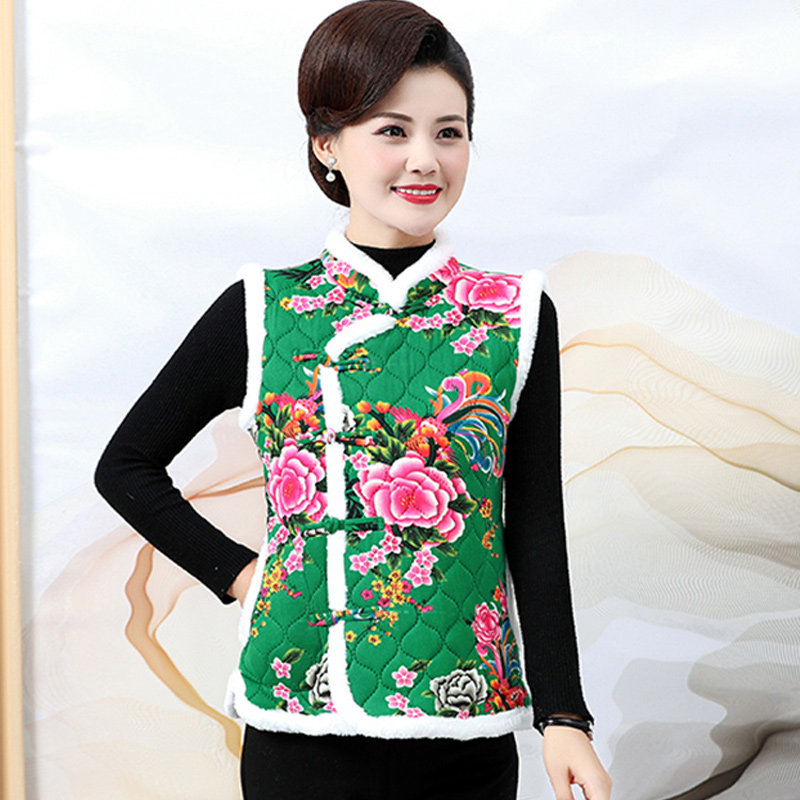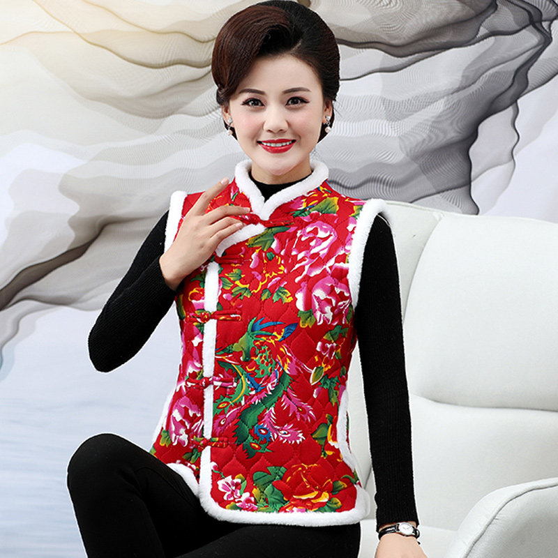Mother Autumn Winter Northeast Large Flower Cotton Padded Jacket Malady Female Vest China Wind Kinder Fashion Retro Disc Button Cotton Clog-Taobao
