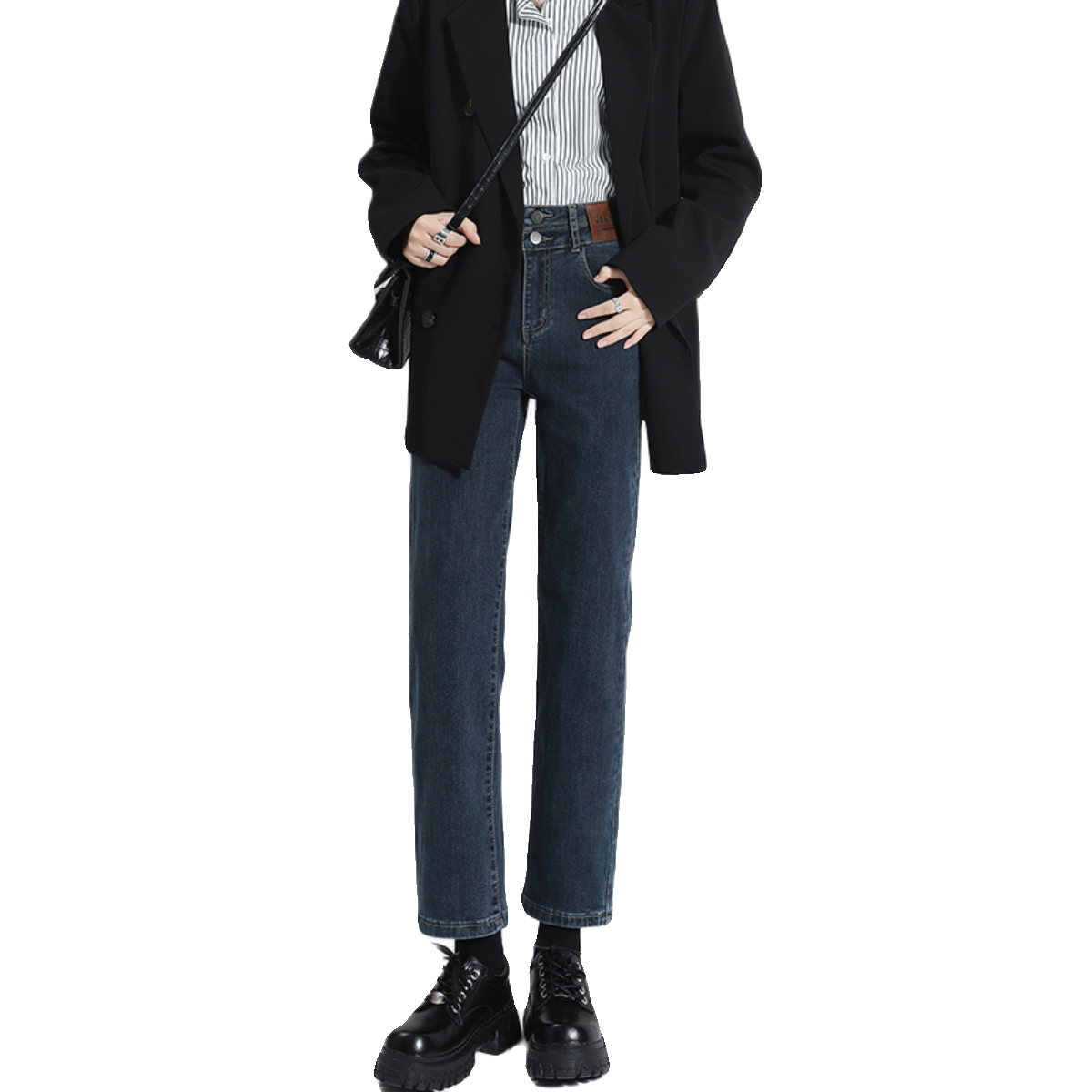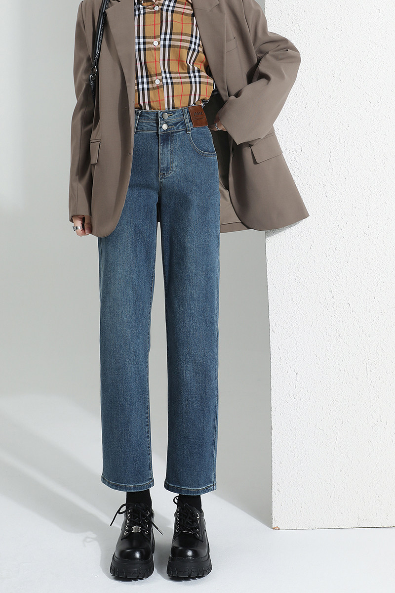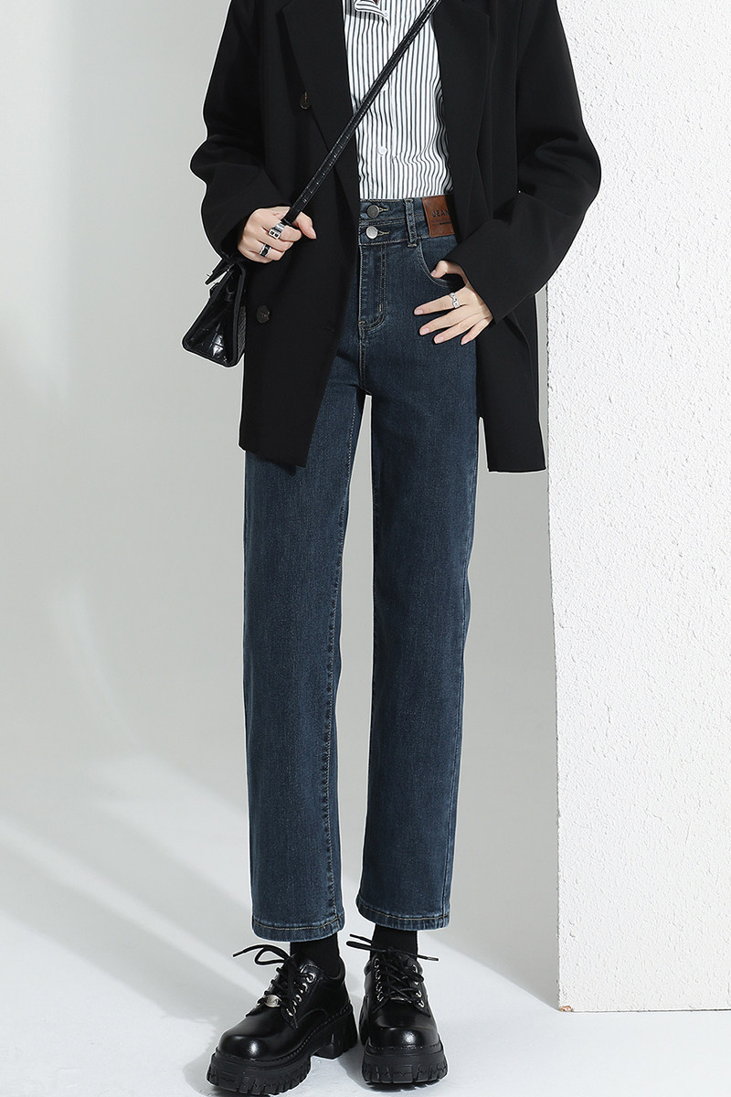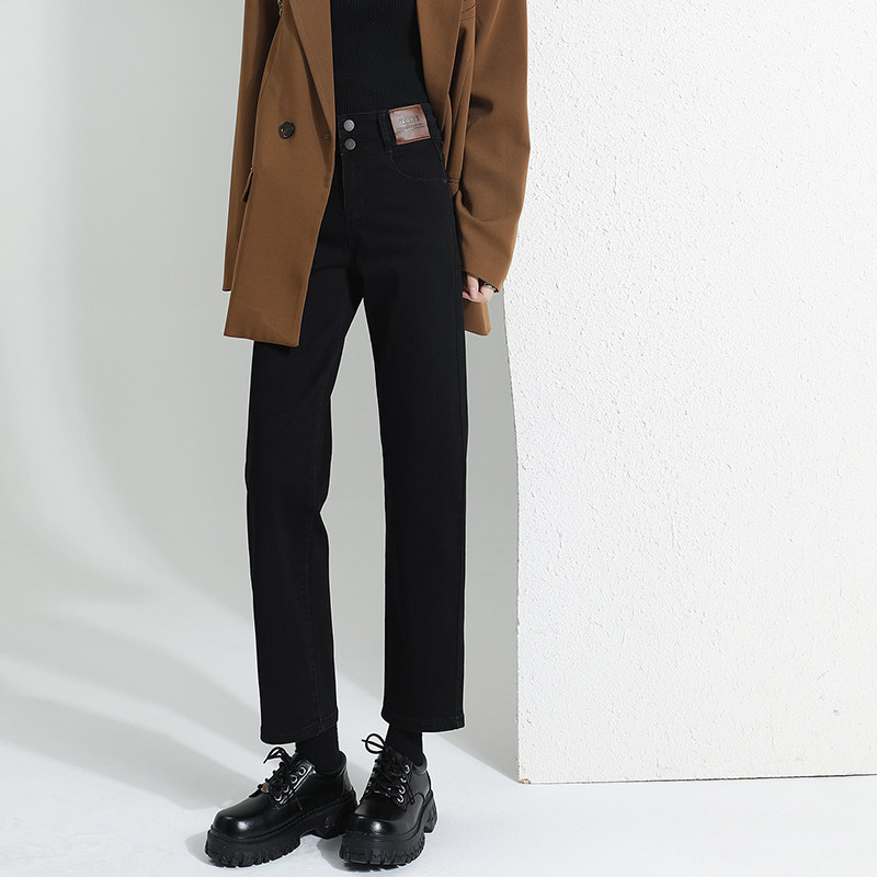 Lasciabel Black Smoke Pipe Pants Straight Drum Pants Jeans Women 2023 New Autumn Winter Plus Suede Slim Pants-Taobao