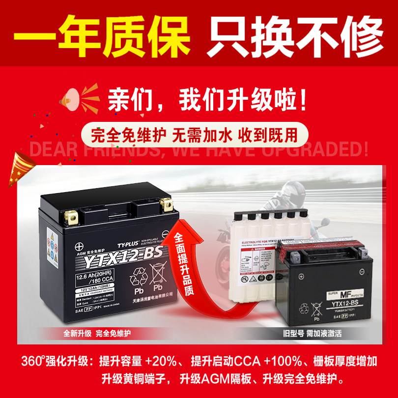 YTZ5S off-road vehicle universal (capacity 5Ah) YTZ7S copper overhead fit (capacity 6Ah) YTX7L-BS copper overhead fit (capacity 8Ah) YT