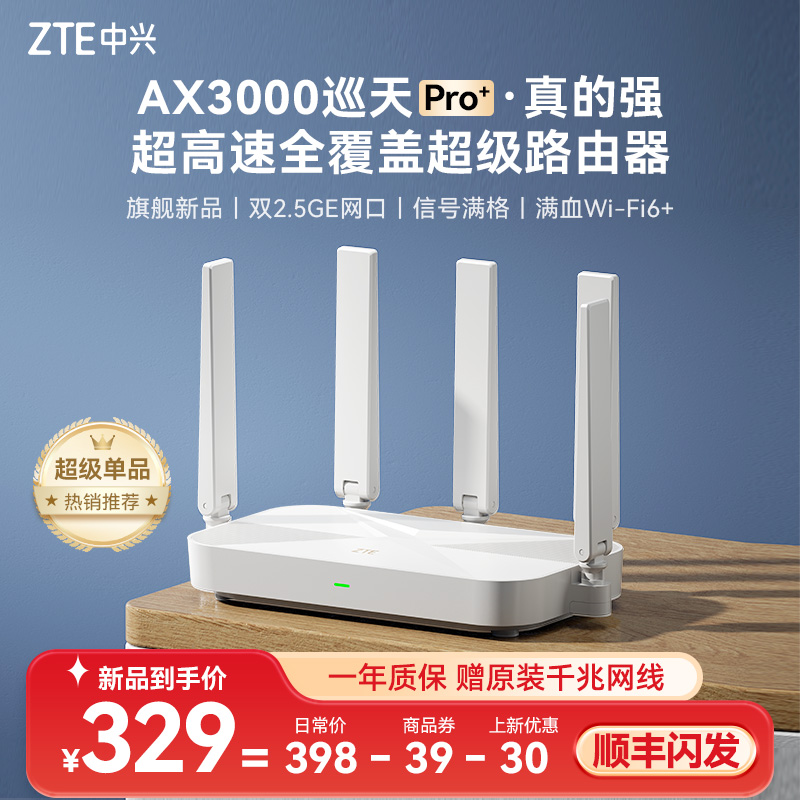ZTE ZTE AX3000 Tour Day Pro wifi6 Radio Race Router 2 5G Ports one thousand trillion Dual-frequency Home All-house Grand-House Type High Speed Optical Fiber Wearing Wall Game Smart and primary m