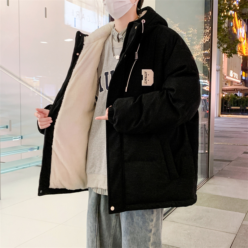 Lamb Suede Autumn Winter Men Cotton Clothing Plus Suede Thickened Warm Jacket Cotton Clothing Trendy with cap down cotton padded jacket-Taobao