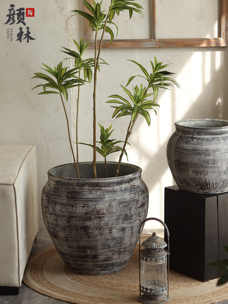 Grey Art Cement Flowerpots Retro Great Flower Pots Gentian Blue and Blue Flowers Indoor Living Room Green Plant hotel decorations-Taobao