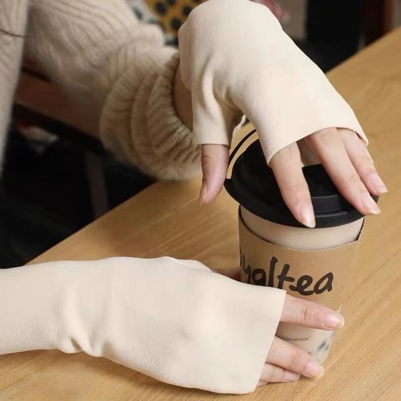 2023 New Duvet Half Finger Gloves Hip Hop Long Warmth Divine Instrumental Dew Finger writing Driving office typing Korean version-Taobao