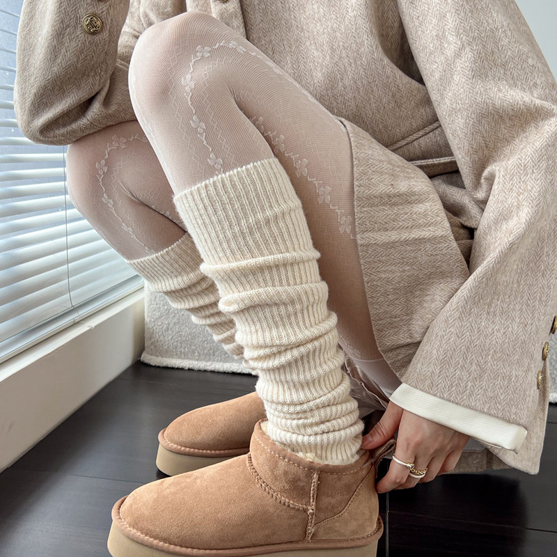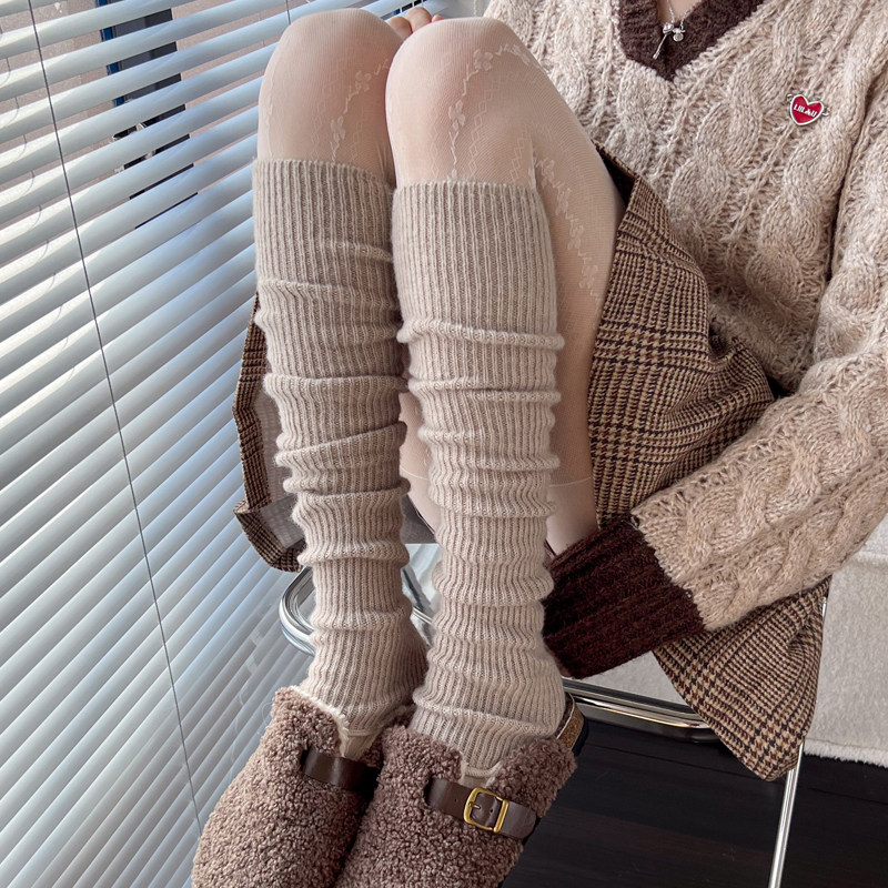 Autumn Winter Oat Color Leg Set Thickened Warm Wool Coffee Color Heaps Pile Socks Grey Calf Socks Rice White Socks woman-Taobao