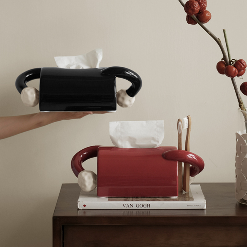 Natto (sugar beans) New Year's red ceramic paper towels box swing piece cute home living room tea table bedroom extraction paper box-Taobao