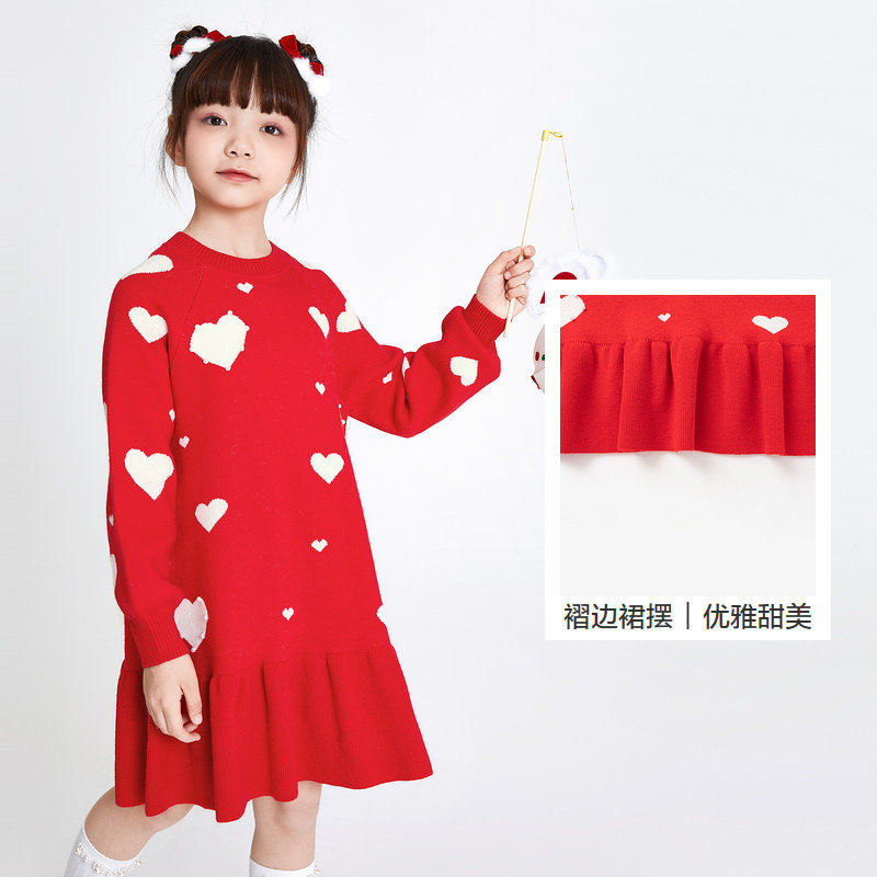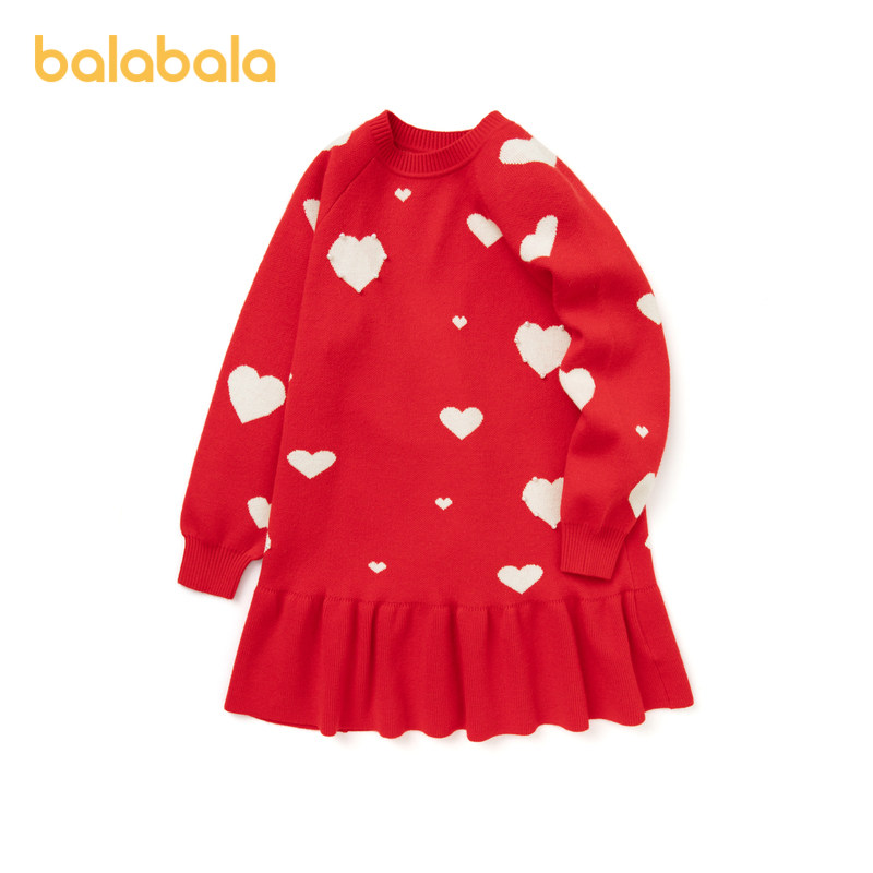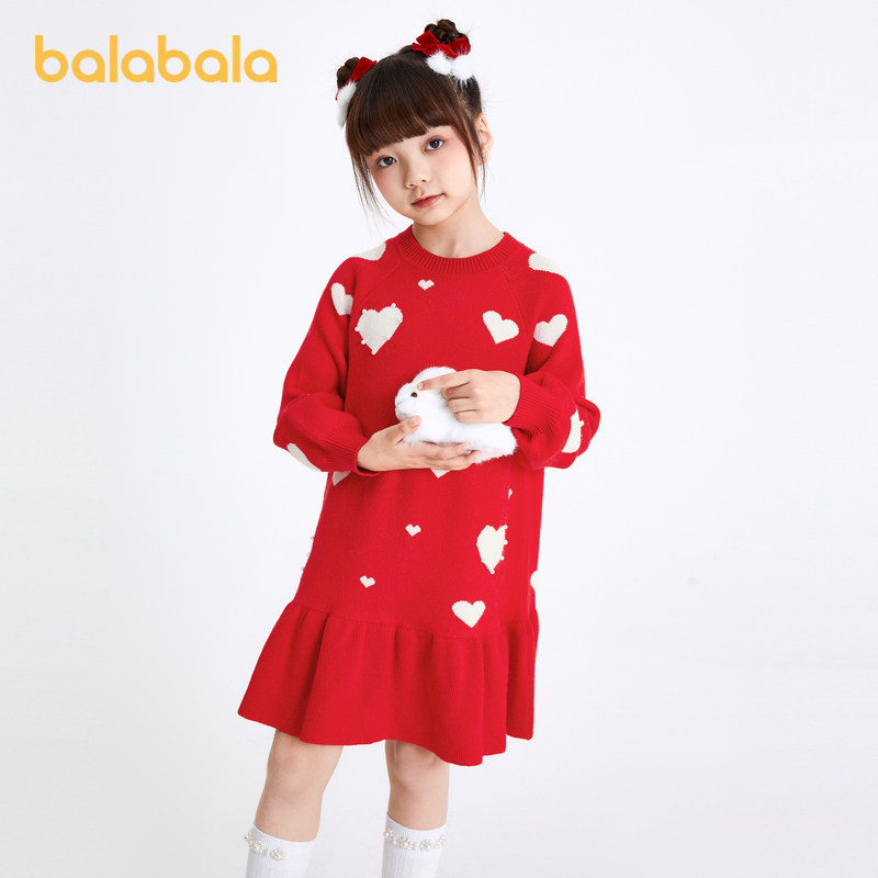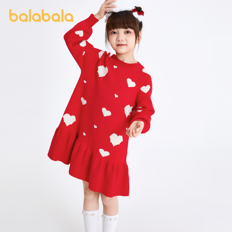 Ballabala girls dress dress children's skirts spring dress 2024 new New Year season CUHK Lotus Leaf Side Warm-Taobao