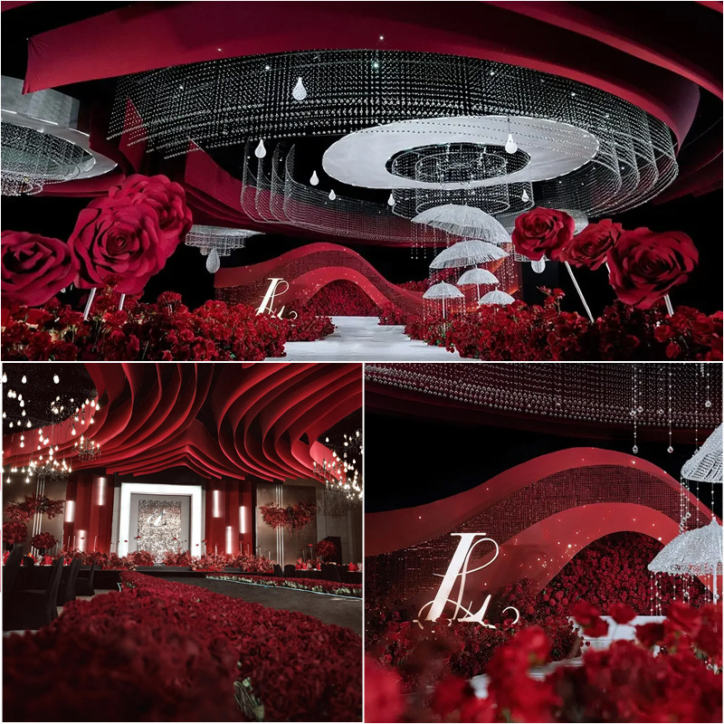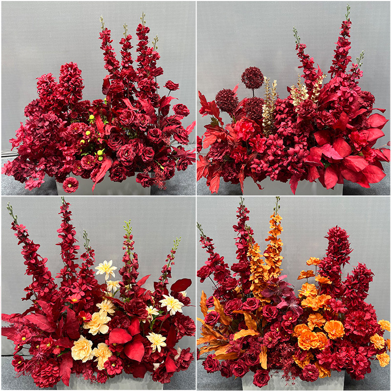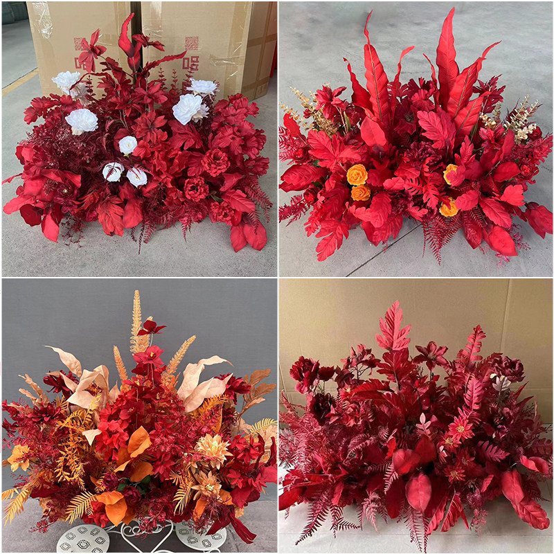 Wedding party Flowers Red Chinese Wedding Banquet Arranged Wedding Hall Stage Road Leading Flowers Wedding of Fancy Silk Platoon Emulation Flowers-Taobao