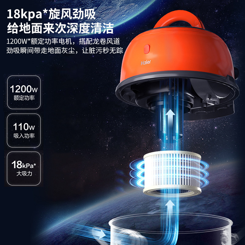 Haier 380 barrel type vacuum cleaner large suction household handheld high power stainless steel barrel suction all-in-one water suction machine-Taobao